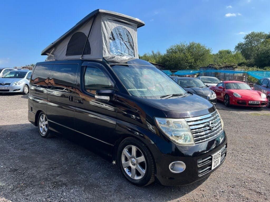 A great opportunity to purchase a low mileage 2005 Nissan Elgrand Series 2 Highway Star 2.5 V6 petrol automatic 4 berth campervan conversion finished in Nissan's stunning G30 trim-colour paint with half leather dark interior. Genuine low mileage of just 57,000 from new & is backed up with BIMTA certificates confirming low mileage in Japan, to give the new owner complete piece of mind. This is our show camper so it has a fully loaded specification when we carried out the professional conversion, spec is as follows; black walnut flooring by polyflor, pearl grey cupboards, gloss carbon fibre work tops with silver edging by grass roots leisure, tambour sliding door, chrome reading light, Drivelodge pop top with the optional clear front viewing window with side vents & bed boards, 120W Victron Solar panel with Bluetooth connectively, MV air 2KW petrol heater, Custom Metaltech Rock N roll bed finished in black leather, silver fridge freezer, premium grade leisure battery, gas container, removable 20L water storage, 2 X USB ports, split charging system, 1 X 12V charger, 2 X 3 pin charger, foldaway table in matching gloss carbon, external electrical hook up, slim line base passenger swivel seat, Dometic 2 stove cooker & sink with cold water tap, Famma F35 foldaway side awning, additional lighting that runs off the leisure battery & much more. This is a 4 seater car and 4 birth camper with M1 crash tested rock n roll bed with certificate supplied. This is also a high spec; Both electric sliding doors, Wing mirror camera, reverse camera, full after market curtains, Air con, climate control, separate rear climate control. Super tidy Grade 4B vehicle in Japan. BIMTA APPROVED DEALER. BIMTA MILEAGE CERTIFCATE SUPPLIED WITH EVERY VEHICLE. PLEASE CALL TO BOOK AN APPOINTMENT. NISSAN ELGRAND SPECIALIST, ALL HAND SELECTED EXAMPLES FROM JAPAN, OVER 15 NISSAN ELGRANDS READILY AVAILABLE TO VIEW IN OUR OPEN YARD. JAPANESE IMPORT SPECIALISTS.