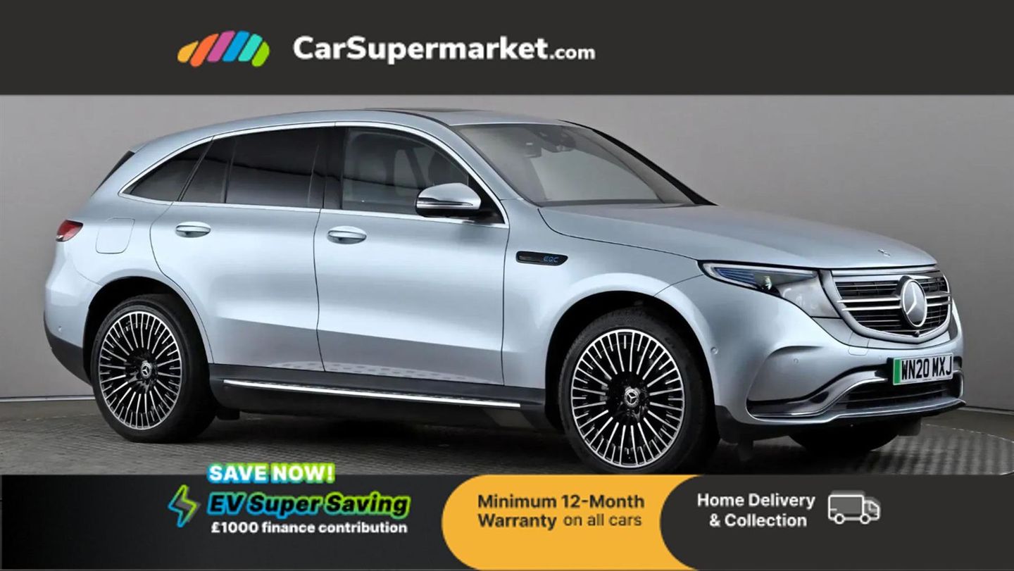 Sat Nav, Digital Radio, Privacy Glass, Heated Front Seats, 21" Alloy Wheels, Panoramic Glass Roof, Burmester Sound System, Reverse Camera, Cruise Control, Parking Sensors, Climate Control, Leather Upholstery;This 2020 Mercedes Benz EQC 400 AMG Line (Premium Plus) boasts a full service history and a clear vehicle history check, ensuring peace of mind for its next owner. As an electric four wheel drive vehicle, it offers an impressive 244 miles of battery range from its 88 kWh capacity. This EQC is equipped with desirable features including heated front seats for comfort, wireless smartphone charging for convenience, and an electric sliding sunroof to brighten the cabin. Its MOT is valid until April 2026, and it last underwent a service on 08 September 2025 at 55,508 miles. The Mercedes Benz EQC 400 AMG Line (Premium Plus) stands out with its remarkable acceleration, reaching 0 to 62mph in just 5.1 seconds, a performance that surpasses many vehicles in its class. Charging is flexible, with a full charge at home taking approximately 12 hours and 13 minutes on a 7kW charger, while rapid public charging can achieve 80% capacity in as little as 45 minutes. Beyond its dynamic capabilities, this EQC also offers generous boot space, making it a practical choice for everyday use and longer journeys.