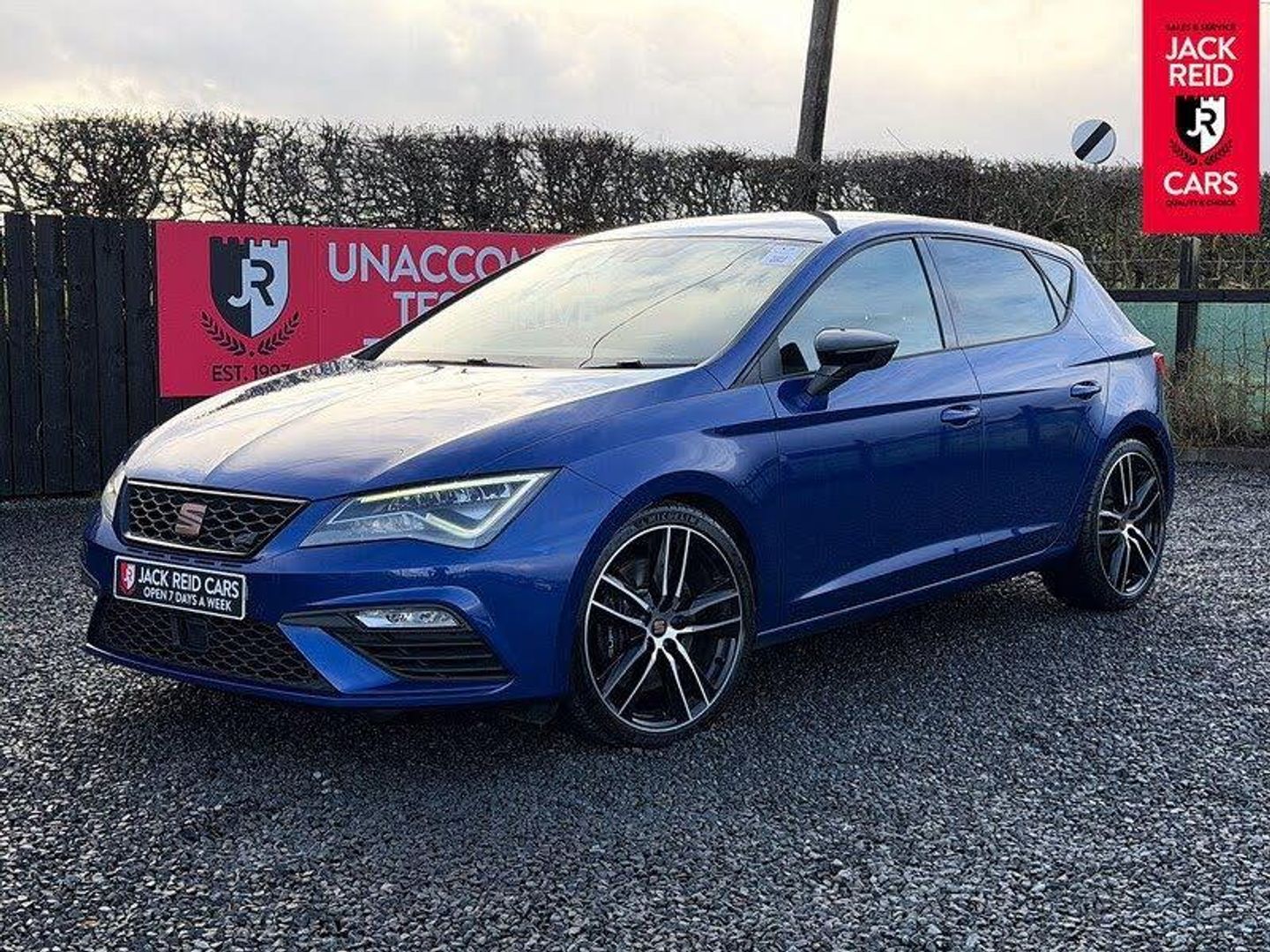 Check out what's all included in this 2020 Seat Leon 2.0 TSI 290 Cupra [EZ] 5dr DSG:. Mystery Blue metallic paint. . CUPRA performance interface. . Digital cockpit.. Front and rear parking sensors. . Navigation system 3D map. . Full Link Smartphone Integration. . Front assist with pedestrian protection.. Full LED headlights. . Multi-colour ambient interior lighting. . 286 BHP. If you like the look of this car and would like to come for a look or an unaccompanied test drive feel free to call down anytime or get in touch to make an appointment. We are open 7 days a week for your convenience!We have one of the largest numbers of cars for sale in our area with up to 200 cars in stock ready to view! We stock a variety of makes and models such as Audi, BMW, Seat, Range Rover, Mercedes, Jaguar and many more!All our cars come warranted by Jack Reid Cars meaning that we make all our decisions in house unlike unreliable warranty companies with too many terms and conditions.We look forward to hearing from you!This car is shown with an optional new alloy wheel and tyre upgrade or it can be returned to the standard wheels, whichever suits you best. Please contact sales for pricing.