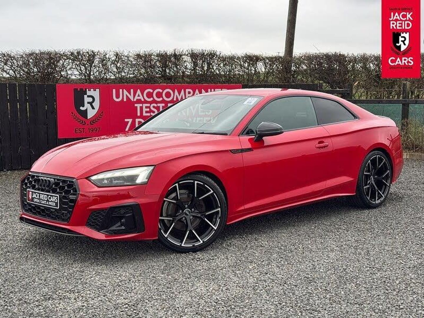 Check out what's all included in this 2023 Audi A5 35 TFSI Black Edition 2dr S Tronic:. Black styling pack.. LED interior light pack.. Audi virtual cockpit.. MMI nav+ with 3D Maps and MMI touch.. 10.1" touchscreen media system.. Rear view camera.. Voice control system.. Electric boot lid release.. Audi smartphone interface.. Audi parking system plus.. Heated front sports seats.. Multi function sports steering wheel.If you like the look of this car and would like to come for a look or an unaccompanied test drive feel free to call down anytime or get in touch to make an appointment. We are open 7 days a week for your convenience!We have one of the largest numbers of cars for sale in our area with up to 200 cars in stock ready to view! We stock a variety of makes and models such as Audi, BMW, Seat, Range Rover, Mercedes, Jaguar and many more!All our cars come warranted by Jack Reid Cars meaning that we make all our decisions in house unlike unreliable warranty companies with too many terms and conditions.We look forward to hearing from you!This car is shown with an optional new alloy wheel and tyre upgrade or it can be returned to the standard wheels, whichever suits you best. Please contact sales for pricing.