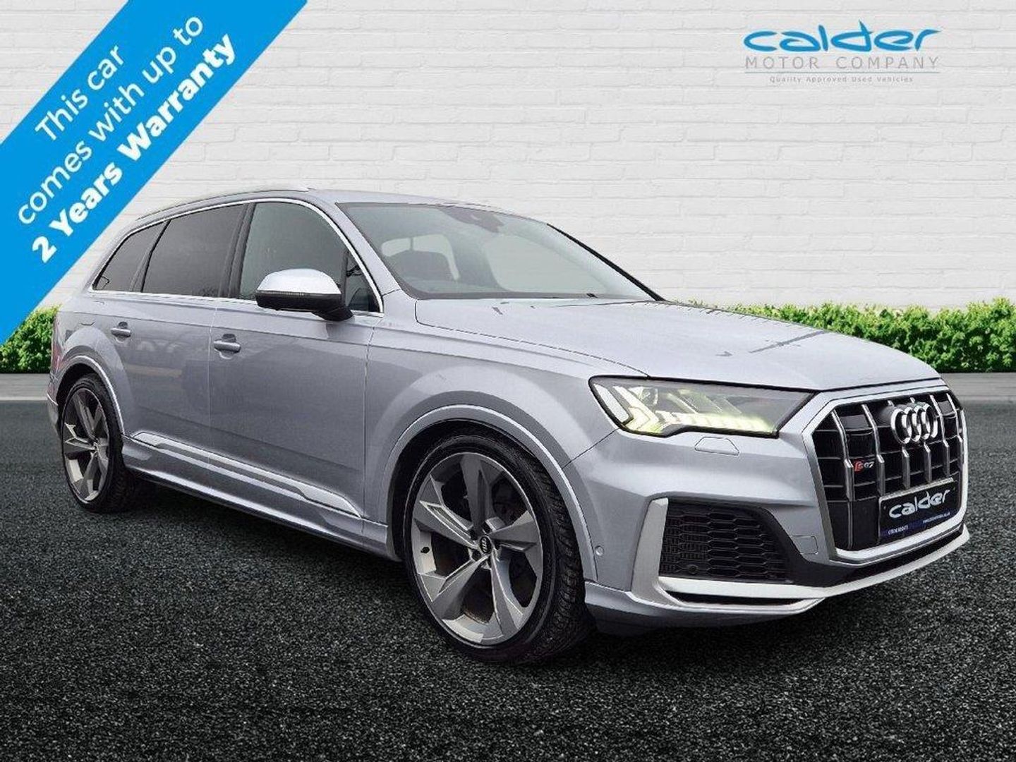 Stunning SQ7 with Only One Former Keeper and Service History. Finished in Floret Silver with Black Super Sports Valcona Leather Seats. Great looking Q7 with a lovely spec including, Comfort and Sound Package, 22" Turbine Design Alloy Wheels, Privacy Glass, 360 Degree Cameras, Wireless Charging Dock, Satellite Navigation, Bose Sound System, DAB Tuner, Bluetooth with Audio Streaming, Keyless Entry, Heated Seats and so much more. This car has Two Keys and Service History. This Approved vehicle come's with our full care package including up to 2 years Platinum Plus Warranty with The Motoring Organisation, 1 years MOT, Full pre-delivery inspection, Full service ( if required ) and Fully Valeted. All Calder Motor Company Premier Approved vehicles are prepared to the highest standard in every way, cosmetically and mechanically. National delivery available. The Motoring Organisation Platinum Plus extended warranty available for up to 2 years. Face time or whats app video walk round available on request. SUNDAY'S BY APPOINTMENT ONLY. EVERY EFFORT HAS BEEN MADE TO ENSURE THE ACCURACY OF THE INFORMATION REGARDING THE VEHICLES SPEC HOWEVER ERRORS MAY OCCUR. CHECK WITH A SALESPERSON ABOUT ITEMS WHICH MAY AFFECT YOUR DECISION TO PURCHASE. Please feel free to Contact us via Phone, Email, Social Media. Nationwide Delivery, All Vehicles Are Fully Disinfected. Full Walkround Video, Face Time Etc. . 22in Alloy Wheels - 10J 5-Spoke - Turbine Design in Matt Titanium Finish - Audi Sport,7 Seats,Airbags - Driver - Front Passenger - Front Side - Curtain,Aluminium Roof Rails,AMI - Audi Music Interface,Anti-Theft Alarm,Audi Beam,Audi Connect (3 Year Subscription From New),Audi Connect Safety and Service - e-call,Audi Drive Select,Audi Hill Hold Assist,Audi Matrix LED Headlights with Dynamic Front and Rear Indicators,Audi Parking System Plus,Audi Phone Box with Wireless Charging,Audi Pre-Sense Front,Audi Smartphone Interface,Audi Virtual Cockpit,Auto Dimming and Frameless Rear View Mirror,Camera-Based Traffic Sign Recognition,Comfort and Sound Package,Cruise Control with Speed Limiter,DAB Digital Radio,Door Mirrors - Heated - Electrically Adjustable - Folding and Auto Dimming with Memory Function,ESC - Electronic Stabilisation Control inc ABS - ASR and EDL,Extended Pedestrian Protection Measures,Flat-Bottomed 3-Spoke Leather Multi-Function Sports Steering Wheel with Shift Paddles,Floret Silver,Front and Rear Flo