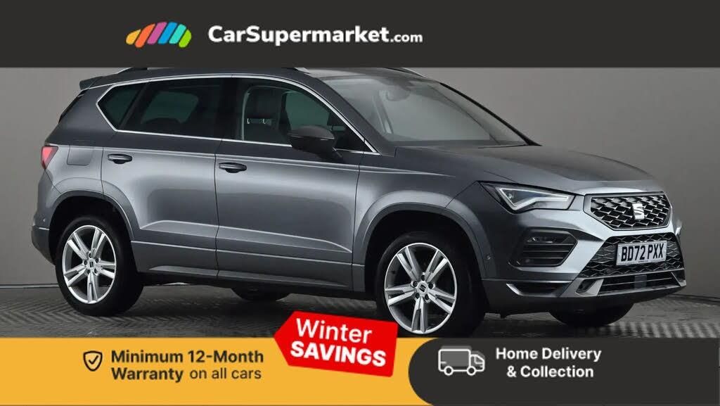 8" Digital cockpit,Colour multi-function on board computer display,Cruise control system with speed limiter,E-call,Outside temperature gauge,Progressive power assisted steering,SEAT drive profile with driving experience button - Normal, Sport, Eco and Individual mode, gearshift, steering and throttle response,Self parking functionality (includes front and rear parking sensors),Trip computer,Wireless full link smartphone integration,Wireless phone charger,Steering wheel mounted audio/phone controls,Body colour bumpers,Body coloured wheel arch surrounds,Chrome front grille frame,Chrome roof rails,Chrome side window trim,Dark tinted rear windows,Daytime running lights,Door mirrors with welcome light silhouette,Dynamic headlight range control with self adjusting whilst driving,Electric adjustable/heated/folding door mirrors,Front and rear electric windows,Full LED headlamps with lens and LED front fog lamps with cornering function,Illuminated aluminium front door sill,LED rear tail lights with dynamic indicators,Rear fog lights,Rear side wing doors,Rear spoiler,Rear wash/wipe,Simulated exhaust pipes in chrome frame,12V socket in front,3 seat bench in 2nd row,60/40 split folding rear seat,Aluminium pedals,Drawer under right front seat,Dual zone climate control,Front and rear head restraints,Front centre armrest,Front seat back storage pockets,Height adjustable driver and passenger seat with lumbar adjustment,ISOFIX points in outer rear seats with top tether anchorage points,Leather steering wheel and gear knob,Microsuede upholstery with front comfort seats,Rear armrest and easy back seat release mechanism from boot,Single front passenger seat,Steering wheel mounted gearshift paddles,Convenience pack - Ateca,Interior lighting pack - Ateca,Navigation system pack with DAB - Ateca,3x3 point rear seatbelts,ABS, Traction control system (TCS), Electronic stability control (ESC) and Electronic differential lock system (XDS),Airbags - Driver and front passenger airbag with deactivation, front side, two curtain and driver's knee airbags,Electric parking brake with auto hold function,Front and rear seatbelt reminder,Front assist with autonomous emergency braking,Hill hold control,Manual rear child locks,Tiredness recognition system,Traction control,Tyre pressure monitoring system,Alarm,Keyless entry,Locking wheel bolts,Chrome interior detailing,18" Brillaint silver alloy wheels
