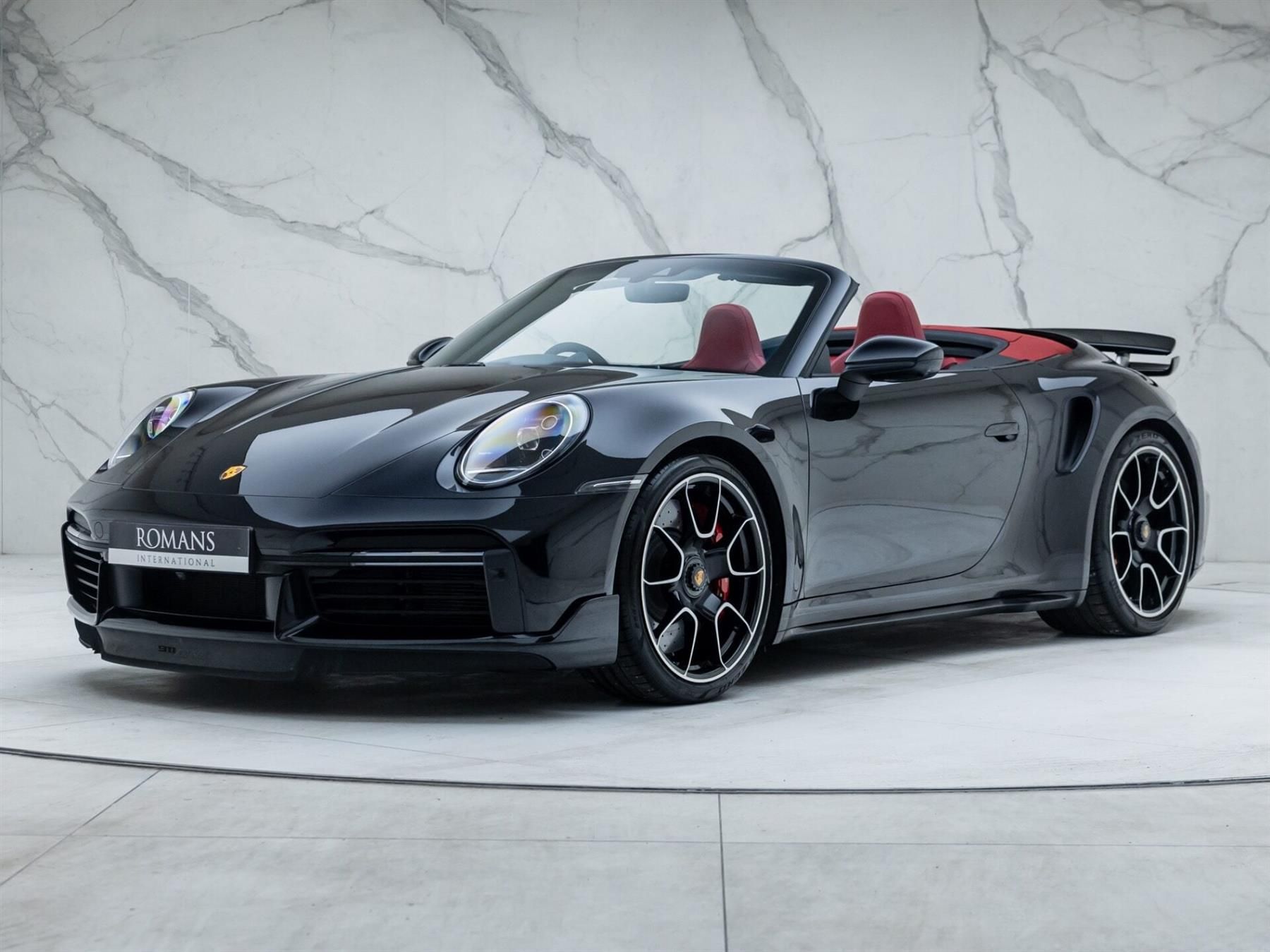 Finished in Jet Black Metallic Paint,Desirably Equipped with SportDesign Package 911 Turbo & Front Axle Lift System,Supplied with Romans International Platinum Warranty,Paint Protection Film (PPF) Applied to Front End,UK Supplied,Cruise Control,Heated Front Seats,Keyless Go,Porsche Communication Management (PCM),Rear-Axle Steering,Smartphone Integration including Apple CarPlay & Android Auto,Two-Zone Automatic Climate Control,Tyre Pressure Monitoring System,20/21-Inch 911 Turbo S Exclusive Design Wheels Painted in High-Gloss Black ,Jet Black Metallic Paint,SportDesign Package 911 Turbo Painted in High-Gloss Black ,Black & Bordeaux Red Two-Tone Leather,Front Axle Lift System,BOSE Surround Sound System,Sports Exhaust System with Black Tailpipes,PASM Sport Suspension (-10 mm),18-Way Electric Adaptive Sports Seats Plus with Memory Package ,ParkAssist including Surround View ,Electric Folding Exterior Mirrors,Power Steering Plus,Heated Multifunction GT Sports Steering Wheel in Race-Tex,Light Design Package,'PORSCHE' Logo LED Door Courtesy Lights,Exclusive Design Taillights ,Porsche Crest on Storage Compartment Lid ,Sport Chrono Stopwatch Instrument Dial in Guards Red,Rev Counter in Guards Red,Convertible Top in Red,Paint Protection Film (PPF) Applied to Front End,