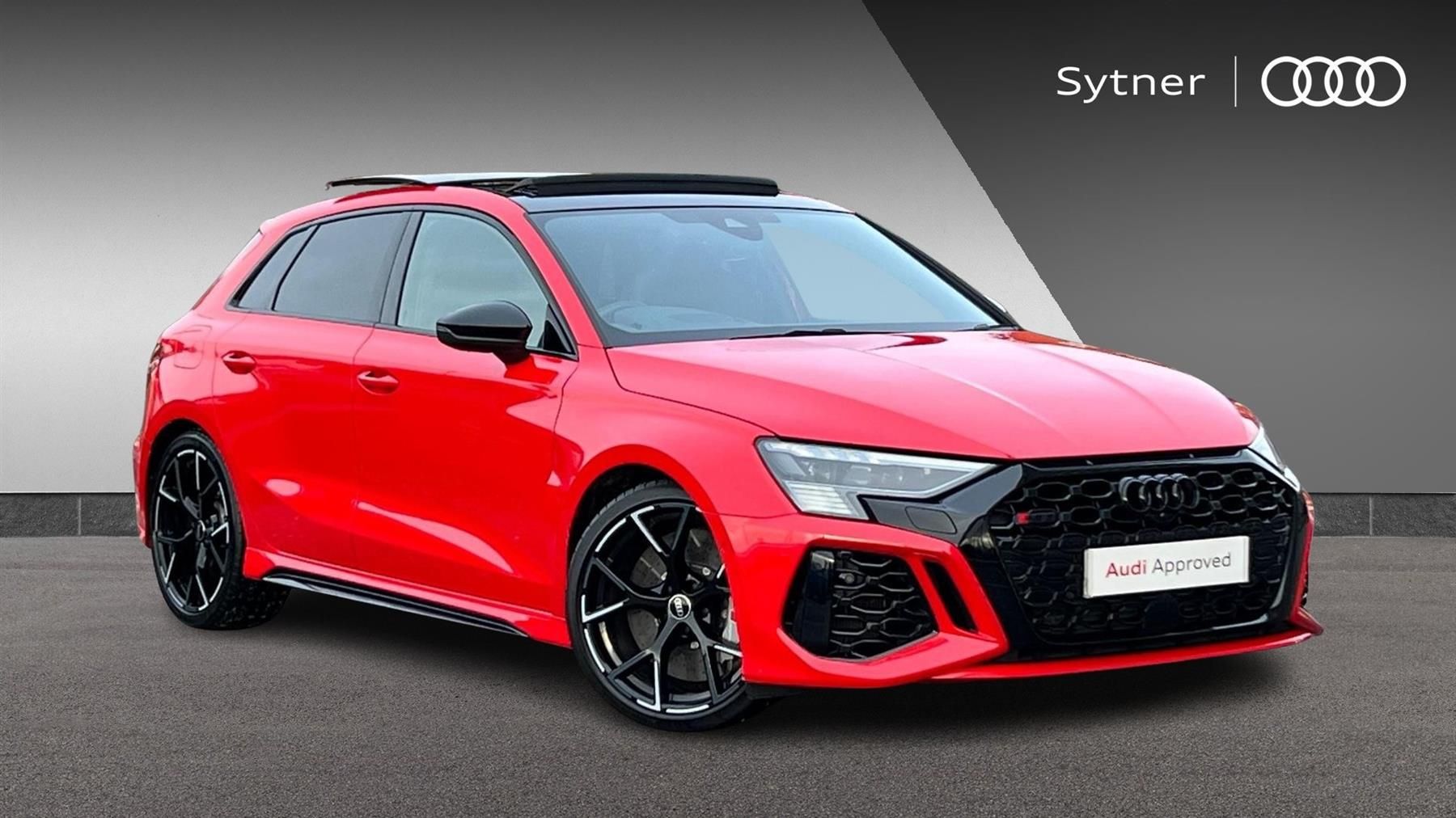 Reserve Online,RS ceramic brakes Grey,RS Dynamic Pack,MMI navigation plus with MMI touch - RS3,Panoramic glass sunroof,Head up Display,Audi virtual cockpit with RS specific display 12.3" full colour digital instrument cluster,Adaptive cruise assist,Camera based traffic sign recognition,Lane departure warning system,RS sports exhaust system,Parking assist with parking system plus,Reversing camera,Heated front seats,Audi beam uses LEDs to project the Audi sport logo onto the ground as you exit your RS 3,Auto dimming rear view mirror,Dual zone electronic climate control,Privacy glass - dark tinted rear and rear side windows from B-pillar backwards