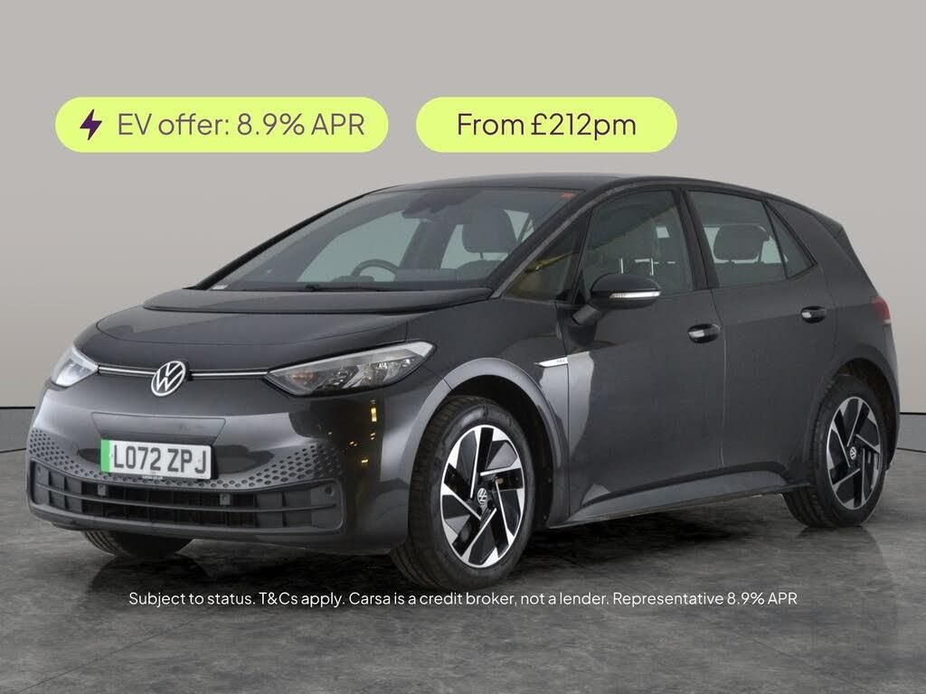 Experience the future of driving with this grey Volkswagen ID.3. Enjoy the comfort of heated seats and a heated steering wheel, perfect for every season. Stay connected and entertained with Apple CarPlay, WiFi, and Sat Nav, while the Assistance Pack and Adaptive Cruise Control make every journey effortless. Seamless Bluetooth audio streaming and Lane Departure Warning add to the smart technology, ensuring a smooth and safe drive. Dont miss out on this outstanding electric hatchback. 2 services recorded, last serviced on 29/12/2025 at 35,422 miles. MOT to 04/01/2027. Visit our website for service history, online valuation, full vehicle specification plus multiple images. This vehicle is VAT qualifying. Any feature/option specified here is from 3rd party data. We cannot guarantee the accuracy of any specification supplied by a 3rd party. We recommend that you physically check the specification of the vehicle on site prior to purchase. This information does not form part of the buying contract. Terms & Conditions apply. We have over 2,000 cars available from our 10 national branches, check our website to see all our stock. Our Trustpilot rating is 4.4/5 with over 9,000 reviews.
