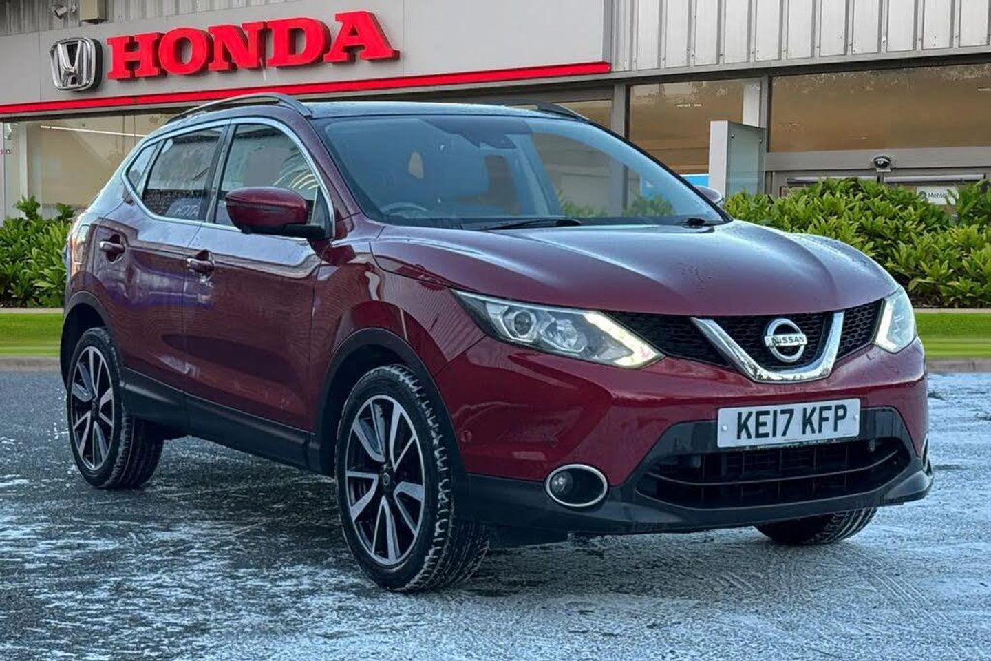 Sports leather/alcantara - Grey with dark headlining,2 speed wipers+variable intermittent wipe,Electric front/rear windows,Heated windscreen,Privacy glass,Rain sensor windscreen wipers,Rear privacy glass,Rear wiper,Black honeycomb front grille,Body colour bumpers,Body colour door mirrors and handles,Chrome window surround,Satin silver roof rails,Automatic headlamp activation,Bi LED headlights with auto levelling,Front fog lights with chrome surrounds,High beam assist,LED daytime running lights,ABS,brake assist and EBD,Electronic parking brake,ESP + traction control,Forward emergency braking,Hill start assist,Around View Monitor,Blind spot monitoring,Cruise control,Front and rear parking sensors,Intelligent parking assist,Lane departure warning system,Moving object detection,PAS,Speed limiter,Traffic sign recognition,Electric folding and heated door mirrors,Interior mirror with auto anti dazzle,Child locks on rear doors,Curtain airbags,Driver/front passenger airbag,Height adjustable front seatbelts,Side airbags,Three 3 point rear seatbelts,Tyre pressure monitoring system,Bluetooth phone integration system,6 speakers,DAB radio/CD player,Steering wheel mounted audio controls,USB/aux input socket,Push button starter,5" TFT driver information centre,Fatigue detection system,Nissan connect sat nav system,Service interval indicator,Trip computer,Diesel particulate filter,Dual zone climate control,Pollen filter,12V socket,Front armrest,Front cupholders x 2,Leather gearknob,Leather steering wheel,Luggage area divider,Rake/reach adjustable steering wheel,Rear armrest with 2 cupholders,Ambient interior lighting,Footwell ambient lighting,Illuminated glovebox,Map reading lamp,60/40 split folding rear seat,Driver/passenger front seatback pockets,Electric front seats for height/ manual lumbar adj,Front headrests,Front seat belt pre-tensioners with load limiters,Heated front seats,Isofix child seat preparation,Rear headrests,Alarm,Immobiliser,Intelligent Key,Remote central locking,Tyre puncture repair kit