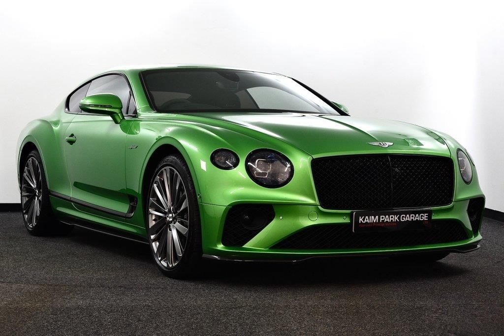 Apple Green metallic with Leather/Alcantara Interior - Camel/Cumbrian/Black, Covered only 23k miles & backed with Full Bentley Service History, 2022 model year, We are delighted to bring to the market this Gorgeous looking GT Speed with possibly the best Spec we have seen, a real 1 Off example not to be missed! THIS GT SPEED COST £275,000 NEW WITH THE FOLLOWING £66,000 EXTRA'S - 22in Alloy Wheels - Speed - Dark Tint Carbon Ceramic Brakes with Black Calipers Styling Specification (High gloss carbon fibre branded side sills, front splitter, rear diffuser, ear lip spoiler) Touring Specification (Head up display, Night vision, Adaptive cruise) Continental Blackline Specification Akrapovic Exhaust System LED Welcome Lamps by Mulliner Apple Green Bentley Rotating Display Naim for Bentley Contrast Stitching Valet Key Deep Pile Overmats - Front Fresh Air Intake and Air Ionizer Front Seat Comfort Specification (Electric memory, Ventilated, Heated and Massage function) Inductive Phone Charger Mood Lighting Specification Welcome Lighting STANDARD GT SPEED FEATURES INCLUDE - All wheel steering, Blind spot warning, Park assist system, Hands free boot opening, Power latching to all doors for easy entry, Rear axle steering, Reversing camera, Top view camera, 3 Chamber air suspension with continuous damping control, Bentley Dynamic ride, Dynamic ride height control + ground clearance function, Electronic limited slip differential, Acoustic and heat insulating front windscreen, Acoustic glass, Auto dimming door mirrors, Deployable rear boot spoiler, Electrically adjustable door mirrors with heating,power fold, memory and dip on reverse functions, Full LED Matrix headlamps with high-beam assist, Full LED tail lamps, Jewel fuel and oil filler caps, Speed unique sports sill, Speed fender badges, Speed inner treadplates and Bentley illuminated outer treadplates, Keyless entry and start, Bentley GPS advanced tracking system, Infotainment system with 12.3 high resolution touch screen retina disp + proximity sensors + advance music interface, single DVD/CD, 2 SD card slots, Navigation system, Bluetooth and Wi-Fi audio streaming, Apple car play, 60GB hard drive, Steering Wheel - 3 Spoke Single Tone - Alcantara Trimmed - Heated, Multi-zone automatic climate control - two zone, Sports pedals + MORE! ***THIS LOVELY GT WILL BE SUPPLIED WITH - Nationwide Executive Plus Warranty | Full Bentley Service History | 1 Yrs MOT | Full Detailed Valet | HPI Gold Check Clear | Owners book pack | x2 Keys! ***NATIONWIDE DELIVERY*** Please visit www.kaimparkgarage.com or contact us for Competitive Finance Quotes, FaceTime walk around appraisal or Personal Video Presentation of this vehicle. We are also very keen buyers of bespoke specialist vehicles by the likes of Kahn, Urban, Overfinch, Lumma, Revere & Onyx etc. Please call us if you wish to sell yours.. 22in Alloy Wheels - Speed - Dark Tint,Carbon Ceramic Brakes with Black Calipers,Styling Specification,Touring Specification,Continental Blackline Specification,Akrapovic Exhaust System,LED Welcome Lamps by Mulliner,Apple Green,Bentley Rotating Display,Naim for Bentley,Contrast Stitching,Valet Key,Deep Pile Overmats - Front,Fresh Air Intake and Air Ionizer,Front Seat Comfort Specification,Inductive Phone Charger,Mood Lighting Specification,Welcome Lighting