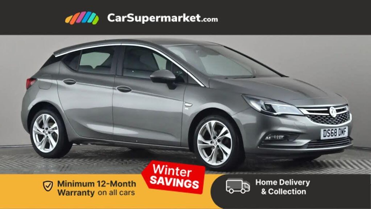 Central facia display with digital clock, outside air temperature and audio information,Cruise control + speed limiter,Digital fuel gauge with low fuel warning light,Digital water temperature gauge with warning light,Electric speed sensitive power steering,Facia mounted Sport switch,Gearshift up/down indication light,Left Key in ignition audible warning,Lights on audible warning,Monochrome display in instrument cluster,Multi function trip computer,Oil life monitoring system,Rev counter,Service due indicator,Speedometer,6 speakers,R4 Intellilink infotainment with 7" screen, DAB, traffic program, USB/iPod, Bluetooth audio streaming A2DP, microphone and Apple Carplay/Android Auto,Steering wheel mounted audio controls,Adaptive brake lights,Body colour door handles,Body colour rear roof spoiler,Body coloured door mirrors,Chrome effect upper window trim,Chrome front grille,Chrome headlight surround,Dipping rear view mirror,Door to door illumination,Electric front/rear windows/one touch facility,Front fog lights,Gloss black finish B pillar,Gloss black finish C pillar,Hazard warning lamps,Heated rear screen with timed cut off,High level LED centre rear brake light,Intermittent rear wash/wipe,LED daytime running lights,LED side repeat indicators,Rain sensor windscreen wipers,Rear fog lights,Reversing light,Side window demist vents,Solar heat absorbing windscreen and windows,Tinted windows,Tunnel detection for auto light control,Twin electrically adjustable and heated door mirrors,Two speed windscreen wipers with variable intermittent wipe,Windscreen demist vents,12V electrical accessory socket in front,3 spoke leather covered steering wheel with accent stitching,60/40 split folding rear seat,Ambient LED downlighter in facia/centre console,Black door panels with black atlantis cloth inserts,Chrome interior door handles,Driver and front passenger illuminated vanity mirrors with flip up covers,Driver and front passenger sunvisors,Fade up/down courtesy light,Folding storage box on driver side lower facia,Four adjustable facia vents,Four load restraint lashing eyes,Front and rear door pockets,Front centre armrest with storage,Front courtesy lights,Front head restraints,Front red LED ambient lighting,Front seat back storage pockets,Fully carpeted load area,Glovebox with lid,Height adjustable and removable rear head restraints (x3),Illuminated load area,Interior tailgate handle,Isofix child seat mounting points on outer rear seats,Luggage compartment cover,Plain black fabric side bolsters and surrounds,Reach + rake adjustable steering column,Rear courtesy lights,Satin chrome effect bezel on steering wheel,Storage compartment in centre console,Titanium headlining,Twin front reading lights with illuminated switches,Twin gas assisted tailgate struts,Twin rear reading lights with illuminated switches,Two drinks holders in centre console,Driver's ergonomic active seat pack with Formula cloth upholstery- Astra,Driving assistance pack 1 - Astra,3x3 point rear seatbelts,Anti-lock braking system (ABS),Child locks on rear doors,Electronic Stability Programme,Height adjustable front seatbelts,Hill start assist,Passenger airbag deactivate switch,Pedal release system,Seatbelt pretensioners on front/outer rear seats,Seatbelt warning,Six airbags - Driver's dual stage airbag/front passenger's dual stage airbag/front seat side impact airbags/full size curtain airbags,Tyre pressure monitoring system,Electronically protected audio,Engine Immobiliser & Deadlocks,Freewheeling door locks,Locking wheel bolts,Remote control central locking,Remote control ultrasonic security alarm system,Visible vehicle identification number,Black facia with piano black trim inserts,Instrument panel bar in piano black,Piano black trim inserts on front doors,Silver air vent surrounds