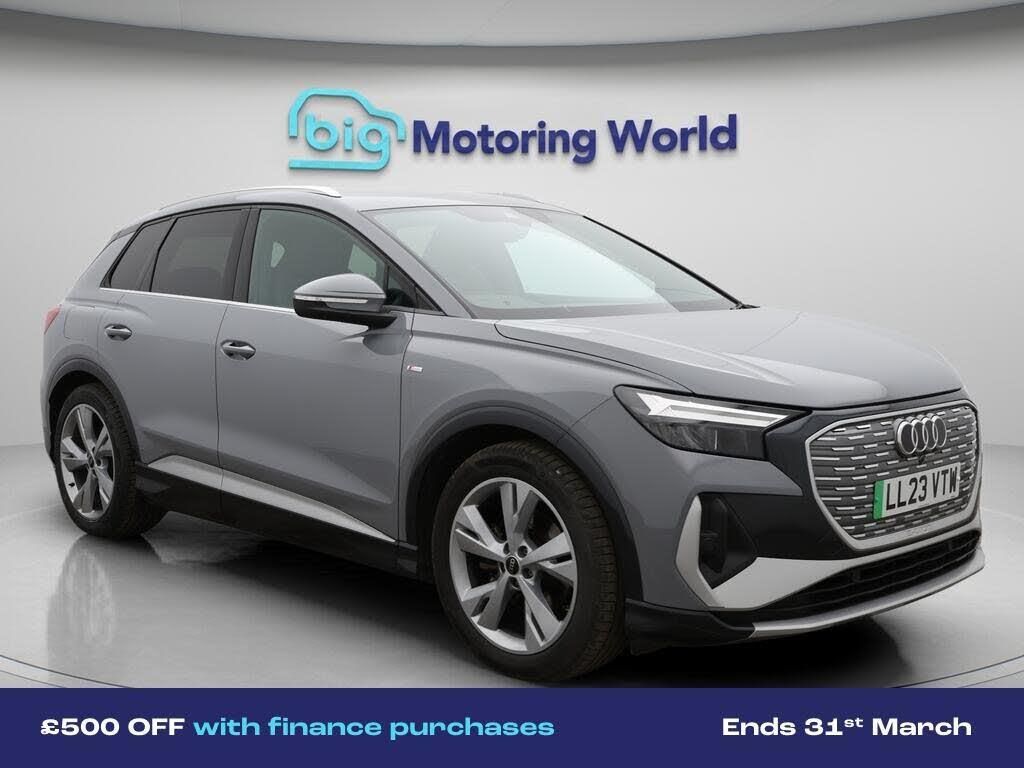 £500 towards your finance depo-Our Audi Q4 e-tron is finished in Grey. Specification includes a range of fantastic features including £500 towards your finance deposit, Part Leather Seats, Apple CarPlay, Lane Assist, S Line Body Styling, Android Auto, Satellite Navigation, Privacy Glass, Heated Seats, Bluetooth Specification information is supplied by CAPHPI and may vary to the actual car. This data does not form any part of a buying contact. Please check specification prior to purchase in-store. The MOT is valid until December 2026, visit bigmotoringworld.co.uk for more photos, a 360 tour, service history and a free HPI report.Were BIG on peace of mind and this Grey Audi Q4 e-tron has completed our comprehensive 200 point inspection and passed all checks. Its ready for you to drive away with immediate collection in-store. We include a 90-day warranty as standard plus an option to extend for up to 3 years.Reserve this car exclusively for you, safely and securely at bigmotoringworld.co.uk, with a fully refundable £99 deposit. Test drive before you buy, with no commitment, no hassle and a completely haggle free experience. Still searching and want to see thousands more cars? We are BIG on choice with over 8000 cars to choose from.Visit our award winning web site bigmotoringworld.co.uk.Were Big Motoring World and were BIG on what matters to you.