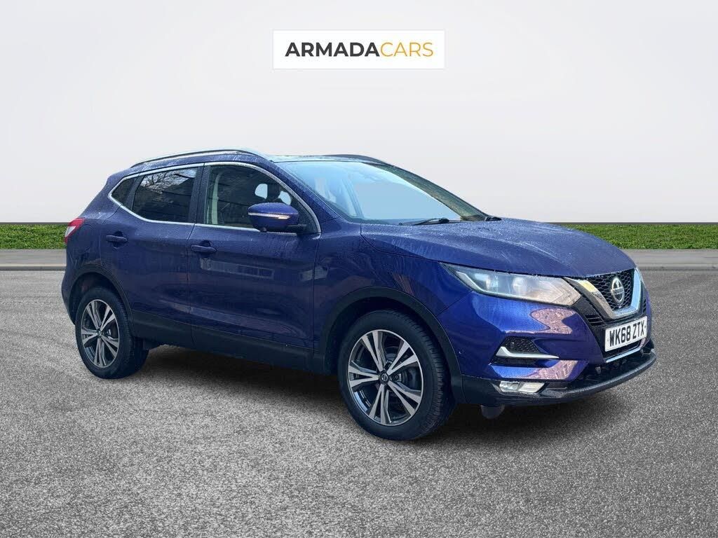 This 2019 Nissan Qashqai dCi N Connect boasts a full service history, offering peace of mind alongside its impressive features. This Euro 6 compliant model is equipped with a 1.5 litre diesel engine and comes with a 6 month warranty. The N Connecta trim level includes the desirable Glass Roof Pack, featuring a fixed panoramic sunroof, and the Smart Vision Pack which adds front and rear parking sensors for enhanced manoeuvrability. Further enhancing safety and convenience are the Safety Shield Plus system, incorporating blind spot assistance, and intelligent auto headlights that activate automatically.This Nissan Qashqai stands out with its excellent fuel economy, achieving an impressive 53 miles per gallon, which is better than many similar vehicles. Its low CO2 emissions and low insurance group also contribute to lower running costs, making it a sensible choice for many drivers. These highlights demonstrate how this Qashqai offers a more economical and accessible ownership experience compared to other cars in its class.We are open MON-SUN by appointment only, P/X Welcome, Finance Options, Delivery possible (fee may incur), Live video viewings, please get in touch for any more information or to book a test drive, we are always happy to help.-F/S/H - 2 Owners - SAT-NAV-Family run business that has been operating for over 30 years who value their reputation for quality