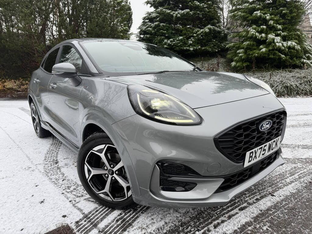 Charcoal interior.This Stunning 1 owner, like new ford puma st-line finished in solar silver and WITH A VERY LOW MILEAGE OF ONLY 849 MILES. The car comes with some great features including- cruise control and speed limiter, rear sensors with rear camera, air con, voice control, automatic lights, sync 4 navigation, front and rear electric windows, power folding mirrors, rear privacy glass, steering controls, 4 drive modes, stop-start, traction control, automatic climate control, heated windscreen plus much more!!!