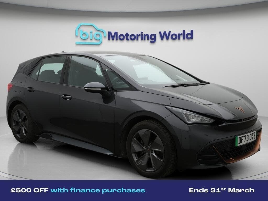 £500 towards your finance depo-Our CUPRA Born is finished in Grey. Specification includes a range of fantastic features including £500 towards your finance deposit, 18'' alloy wheels, Apple CarPlay, Lane Assist, Android Auto, Satellite Navigation, Rear View Camera, Heated Steering Wheel, Bluetooth, Parking Sensors Specification information is supplied by CAPHPI and may vary to the actual car. This data does not form any part of a buying contact. Please check specification prior to purchase in-store. The MOT is valid until December 2026, visit bigmotoringworld.co.uk for more photos, a 360 tour, service history and a free HPI report.Were BIG on peace of mind and this Grey CUPRA Born has completed our comprehensive 200 point inspection and passed all checks. Its ready for you to drive away with immediate collection in-store. We include a 90-day warranty as standard plus an option to extend for up to 3 years.Reserve this car exclusively for you, safely and securely at bigmotoringworld.co.uk, with a fully refundable £99 deposit. Test drive before you buy, with no commitment, no hassle and a completely haggle free experience. Still searching and want to see thousands more cars? We are BIG on choice with over 8000 cars to choose from.Visit our award winning web site bigmotoringworld.co.uk.Were Big Motoring World and were BIG on what matters to you.