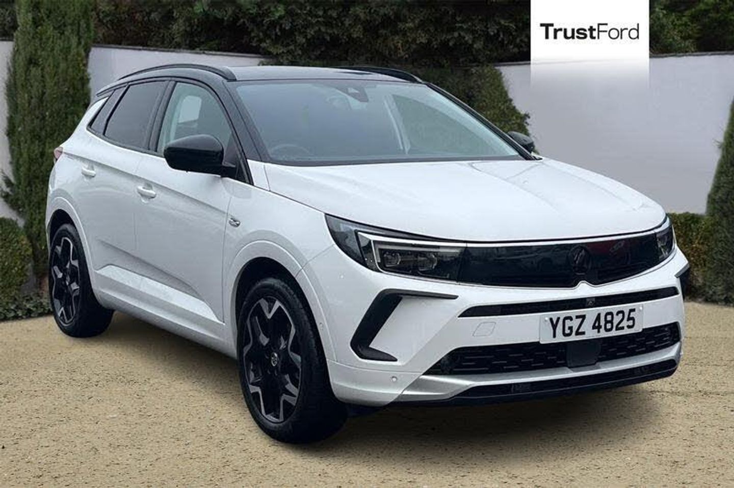 Bluetooth + USB, Central facia display with digital clock, outside air temperature and audio information, Cruise control with speed limiter, Digital fuel gauge with low fuel level warning light, Digital rev counter, Digital speedometer, Digital water temperature gauge with warning light, Driver drowsiness alert system, Driver information - Total mileage, service indicator, oil life, Front and rear parking distance sensors with 360 degree rear view camera and advanced park assist, Gearshift up/down indication light, Lane departure warning system, Lane keep assist, Lights on audible warning, Multi function trip computer - Trip odometer, vehicle range, average speed and fuel economy, instantaneous fuel economy and driving time, Multimedia Pure Panel Navigation System incl 10 colour touchscreen, 12 digital instrument cluster & satellite naviagtion, Power operated tailgate with foot sensor, RDS with traffic programme, Side blind spot alert, Speed sensitive electric power assisted steering, Speed sign recognition, Start/stop system, Vauxhall connect including Emergency call (SOS e-call) and Breakdown call (b-call), Wireless charger for mobile devices, Automatic lighting control, Automatically dimming anti dazzle rear view mirror, Black door mirrors, Black side window trim, Body colour door handles, Body colour upper front bumper, Carbon black lower front and rear bumpers, protective wheel arches and lower door cladding, Collapsible windscreen wipers, Dark tinted rear windows, Door to door illumination, Electric adjustable/heated/folding door mirrors, Electrically operated front and rear windows with safety auto reverse and one touch up/down facility, Front wiper system spraying directly from wipers, Hazard warning lights, Heated rear screen with timed cut off, Heated windscreen, High beam assist, High gloss black cladding, High gloss black exterior detailing, High gloss black Griffin for Vizor and tailgate with high gloss black Grandland tailgate lettering, High gloss black protective front and rear skid plates and C-shape bumper inserts, High gloss black roof rails, High level centre rear brake light, IntelliLux adaptive LED pixel headlights and LED tail lights, Intermittent rear window wash/wipe, LED daytime running lights, LED front fog lights, Magic wash, Manual headlight beam levelling, Rain sensor windscreen wipers, Rear side wing doors, Rear spoiler, Reversing light, Shark fin aerial, Soundproof insulated windscreen, Two speed windscreen wipers with variable intermittent wipe, Upper and lower bumper design, Vizor front grille, Welcome lighting, 12V electrical accessory socket in front, 3 bench rear seats in 2nd row, 3 spoke heated flat bottom leather effect steering wheel with satin chrome effect bezel, 6 way adjustable Ergonomic active heated sports style front seats AGR approved with seat cushion extension and lumbar adjustment, 60/40 split folding rear seat with centre rear seat armrest and load though facility, Advanced predictive logic control system using a sun sensor, Alcantara cloth upholstery, Ambient centre console downlighter, Automatic air direction and fan speed with manual override, Black premium leather effect side bolsters, Charcoal filter, Chrome effect interior door handles, Covered storage compartment in centre console and in driver armrest, Driver's centre armrest, Driver/passenger sunvisors with illuminated vanity mirrors, Dual zone electronic climate control, Front door pockets with 2.6 litre capacity, Front seat back storage pockets, Fully carpeted luggage area, Height adjustable headrests, Illuminated luggage area, ISOFIX on front passenger and rear outer seats, Luggage compartment cover, Reach + rake adjustable steering column, Rear centre seat head restraint, Rear door pockets with 1.8 litre capacity, Rear passenger compartment heating ducts, Rear reading lights, Two drinks holders in centre console, Anti-lock braking system (ABS), Automatic emergency braking with pedestrian detection, Chil