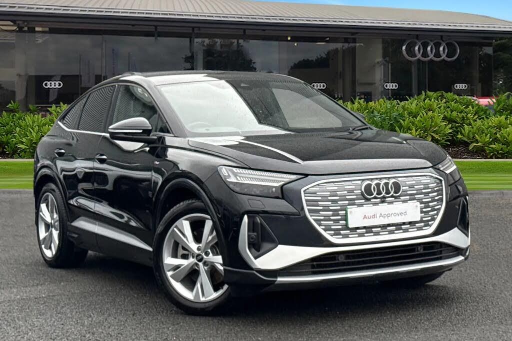 Carlisle Audi is pleased to introduce this Audi Q4 e-tron S line, finished in Mythos Black. This vehicle boasts a substantial 82 kWh battery capacity, providing a maximum range of 352 miles when new. Charging at home using a 7kW charger will take approximately 13 hours for a full charge, while rapid public charging can take you from empty to 80% in as little as 28 minutes. This electric vehicle is able to achieve 0-62mph in a swift 6.7 seconds, perfect for journeys both long and short. This Q4 sits on a set of 20" 5-Y-spoke alloys, allowing you to stand out from the crowd, alongside privacy glass and electrically powered tailgate. This Q4 also comes with a rear view camera and Audi Parking System Plus, making parking and manoeuvring your vehicle a doddle. This Q4 comes with the Technology Pack, this includes upgraded Matrix LED headlights, ensuring you can confidently see whilst driving, no matter the conditions. This pack also includes a headlight washer system and the Audi phone box, allowing you to safely store and charge your phone distraction free. This pack also includes the upgraded SONOS Premium Sound system, allowing you to listen to all your favourite music in stunning quality. In front of the driver is the multifunction steering wheel that allows you to easily control your music, cruise control and Audi Virtual Cockpit. Here you can see information about your car, phone connectivity and navigation system, keeping you informed whilst you're on the move.