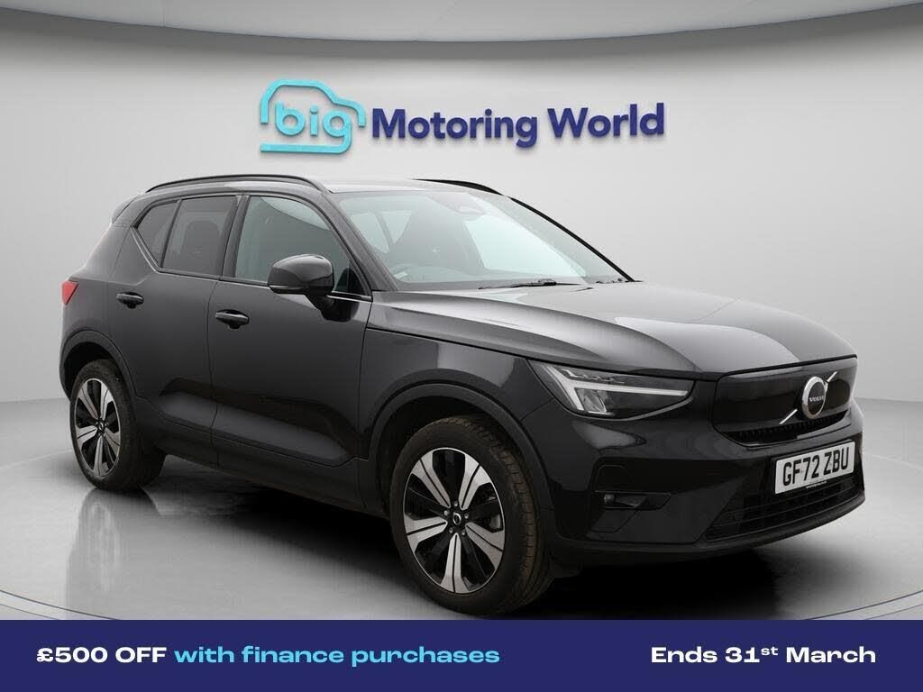 £500 towards your finance depo-Our Volvo XC40 comes with optional extras worth £585. Specification includes a range of fantastic features including £500 towards your finance deposit, All Wheel Drive, Apple CarPlay, Adaptive Cruise Control, Android Auto, Privacy Glass, Gesture Tailgate, Rear View Camera, Memory Seats, Heated Steering Wheel Specification information is supplied by CAPHPI and may vary to the actual car. This data does not form any part of a buying contact. Please check specification prior to purchase in-store. The MOT is valid until January 2027, visit bigmotoringworld.co.uk for more photos, a 360 tour, service history and a free HPI report.Were BIG on peace of mind and this Black Volvo XC40 has completed our comprehensive 200 point inspection and passed all checks. Its ready for you to drive away with immediate collection in-store. We include a 90-day warranty as standard plus an option to extend for up to 3 years.Reserve this car exclusively for you, safely and securely at bigmotoringworld.co.uk, with a fully refundable £99 deposit. Test drive before you buy, with no commitment, no hassle and a completely haggle free experience. Still searching and want to see thousands more cars? We are BIG on choice with over 8000 cars to choose from.Visit our award winning web site bigmotoringworld.co.uk.Were Big Motoring World and were BIG on what matters to you.