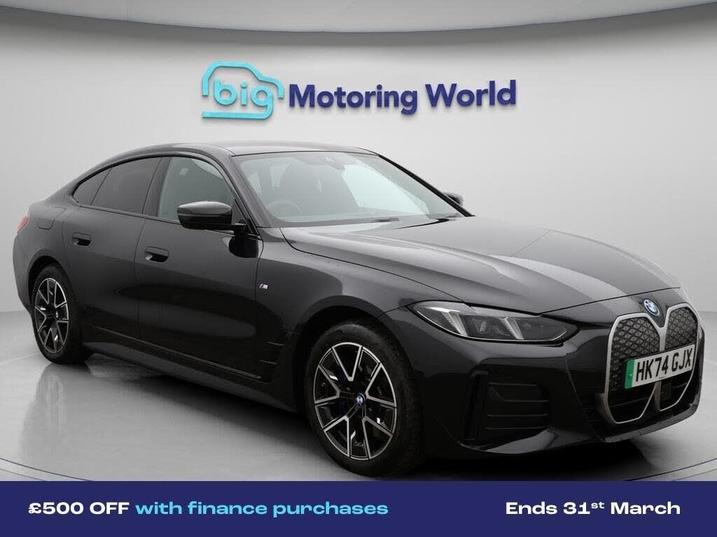£500 towards your finance depo-Our BMW i4 comes with optional extras worth £1,275. Specification includes a range of fantastic features including £500 towards your finance deposit, Sun Protection Pack, Apple CarPlay, Connected Package Professional, M Sport Exterior Styling Pack, M Sport Bodykit, Android Auto, Satellite Navigation, Privacy Glass, Heated Seats Specification information is supplied by CAPHPI and may vary to the actual car. This data does not form any part of a buying contact. Please check specification prior to purchase in-store. The MOT is valid until January 2028, visit bigmotoringworld.co.uk for more photos, a 360 tour, service history and a free HPI report.Were BIG on peace of mind and this Black BMW i4 has completed our comprehensive 200 point inspection and passed all checks. Its ready for you to drive away with immediate collection in-store. We include a 90-day warranty as standard plus an option to extend for up to 3 years.Reserve this car exclusively for you, safely and securely at bigmotoringworld.co.uk, with a fully refundable £99 deposit. Test drive before you buy, with no commitment, no hassle and a completely haggle free experience. Still searching and want to see thousands more cars? We are BIG on choice with over 8000 cars to choose from.Visit our award winning web site bigmotoringworld.co.uk.Were Big Motoring World and were BIG on what matters to you.