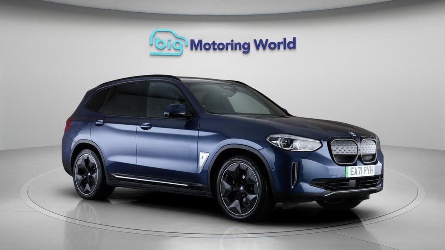 £750 towards your finance depo-Our BMW iX3 is finished in Blue. Specification includes a range of fantastic features including £750 towards your finance deposit, Sun Protection Pack, Head up Display, 20'' Alloy Wheels, Leather Seats, Apple CarPlay, Adaptive Cruise Control, Electric Seats, Harman Kardon Speakers, Electric Panoramic Roof Specification information is supplied by CAPHPI and may vary to the actual car. This data does not form any part of a buying contact. Please check specification prior to purchase in-store. The MOT is valid until November 2026, visit bigmotoringworld.co.uk for more photos, a 360 tour, service history and a free HPI report.Were BIG on peace of mind and this Blue BMW iX3 has completed our comprehensive 200 point inspection and passed all checks. Its ready for you to drive away with immediate collection in-store. We include a 90-day warranty as standard plus an option to extend for up to 3 years.Reserve this car exclusively for you, safely and securely at bigmotoringworld.co.uk, with a fully refundable £99 deposit. Test drive before you buy, with no commitment, no hassle and a completely haggle free experience. Still searching and want to see thousands more cars? We are BIG on choice with over 8000 cars to choose from.Visit our award winning web site bigmotoringworld.co.uk.Were Big Motoring World and were BIG on what matters to you.