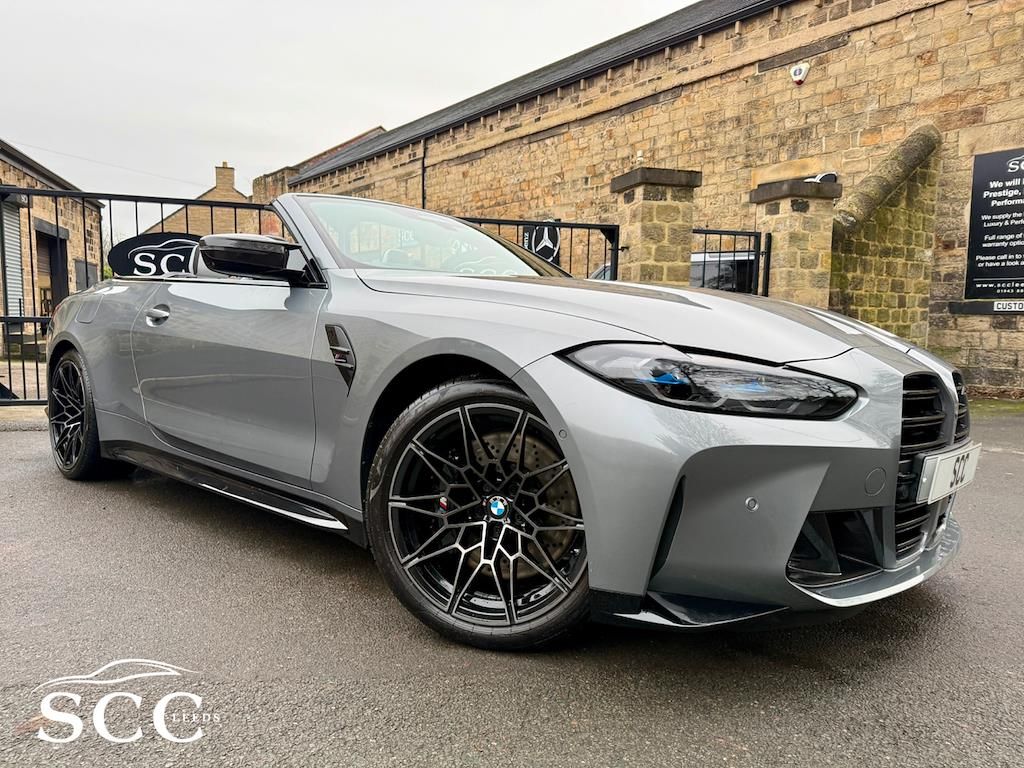 2022 (CP22AKO) BMW M4 Competition Cabriolet xDrive � Ultimate Pack! Sky Scraper Grey, Silverstone & Black Merino Leather �57,695, 11,000 Miles, 2 Owners. **FULL BMW HISTORY INC. RUNNING IN CHECK** An exceptional BMW M4 Competition Cabriolet, finished in the stunning Sky Scraper Grey with a striking Silverstone & Black Merino leather interior. A true driver�s car that blends supercar-level performance with everyday usability and open-top drama. Under the bonnet sits BMW M�s 3.0-litre twin-turbocharged straight-six, producing a ferocious 510bhp, delivered through the lightning-fast 8-speed automatic gearbox and xDrive all-wheel drive system. The result is relentless acceleration, razor-sharp handling and immense confidence in all conditions. As a dealer supplied extra this car has the 4 exit M Performance Exhaust system giving this car a fantastic soundtrack. This example benefits from the Ultimate Pack, adding a host of premium technology, comfort and driver assistance features to complement the M4�s aggressive character. Specification Highlights:- M4 Competition Cabriolet xDrive Ultimate Pack 510bhp Twin-Turbo M Engine 8-Speed M Steptronic Transmission M Performance Exhaust System Adaptive M Suspension M Sport Exhaust Sky Scraper Grey Paintwork Silverstone & Black Merino Leather Interior Heated Steering Wheel Comfort Access (Keyless Entry) Adaptive LED Headlights Parking Assistant Plus with 360� Cameras Digital Cockpit & Navigation Apple CarPlay / Android Auto Electric Heated Seats Electric Folding Soft-Top Interior Carbon Pack (�1200 on this car) Ultimate Pack (UK Specification) The Ultimate Pack on BMW M4 Convertible includes a mix of performance, luxury and tech enhancements:- Core Pack Features Heated multifunction steering wheel Comfort Access (keyless entry) Adaptive LED Headlights (often with high-beam assist) Parking Assistant Plus (360� camera & automated parking) Lane Departure & Lane Change Warning Sun protection glass Extended storage & other comfort extras Interior & Styling Upgrades M Carbon Bucket Seats (often optional within Ultimate Pack - ours has it) Carbon exterior trim and M Carbon styling options BMW Individual Shadowline lighting trim Luxury instrument panel & premium interior finishes The Ultimate Pack often combines multiple option lines and on many cars includes Driving Assistant Professional and M Driver�s Pack. The interior offers a perfect mix of luxury and motorsport influence, while the aggressive exterior styling and wide stance ensure this M4 looks every bit as fast as it drives. Roof down or up, this car delivers an unforgettable driving experience. With just 11,000 miles and only 2 owners, this is a superb, well-kept example (serviced 3 times already by BMW - last serviced March 2025)that represents outstanding value for a high-spec M car. Fresh MOT upon receipt of deposit. Serious performance. Serious presence. Enquire now to arrange a viewing or test drive 01943884551 12V Power Socket in Front Centre Console and Blanking Plug,19in Front - 20in Rear Alloy Wheels - M Double Spoke - 826 - Forged - Jet Black with Mixed Tyres,8 Programmable Favourite Buttons,ABS - Anti Lock Braking System,AUX-In Connection,Adaptive M Suspension,Air Conditioning - Automatic with Three-Zone,Airbags,Alarm,Ambient Lighting,Automatic Windscreen Wiper and Headlights,BMW ConnectedDrive Online Services,BMW Emergency Call,BMW Individual High-Gloss Shadowline with Extended Contents,BMW Live Cockpit Professional,BMW Mobility Kit,BMW Shadow Lights,BMW TeleServices,Bottle Holders Integrated into Door Trim Storage Compartments - Front - Up to 1 litre,Bumper System - Front and Rear,Carbon-Fibre Reinforced Plastic - CFRP - Roof,Child Seat ISOFIX Attachment,Compartment in Front of Cupholder,Condition Based Service,Connected Package Professional,Control Display - 10.25in Colour Display Screen,Crash Sensor,Cruise Control with Brake Function,Cup Holders in Front - Two with Clamping Elements,DAB Digital Radio,DSC - Dynamic Stability Control - Stabilises the Vehicle in Extreme Situations - Controls Traction,Door Sill Finishers with Aluminium Inserts and Model Inscriptions,Driving Assistant,Dynamic Brake Lights,EPS - Electric Power Steering,Electric Windows - Front and Rear with Open-Close Fingertip Control - Anti-Trap Facility and Comfort Closing Function,Electronic Engine Immobiliser,Extended Storage,Exterior Mirrors - Electrically Folding with Anti Dazzle,Exterior Parts in Body Colour,Exterior Trim - High-Gloss Shadowline,Galvanic Embellisher for Controls,Gearshift Lever with Embossed M Badge,Glove Box,High-Beam Assistant,Instrument Cluster with Extended Contents,Interior Lighting,Interior Rear-View Mirror with Automatic Anti-Dazzle Function,Interior Trim - Black High Gloss,Interior Trim - Carbon Fibre,Kidney Grille with Frameless High Gloss and Model Badging,LED Headlights,LED Taillights with New 3D L-Shaped LED Light Design,Language Version English Handbook,Loudspeaker System - Harman Kardon,Lumbar Support - Driver and Front Passenger,M Compound Brake - Red High Gloss,M Designation,M Drive Professional,M Head-Up Display,M Multifunctional Leather Steering Wheel - Three Spoke with Steering Column Adjustments,M Rear Lip Spoiler in High Gloss Black,M Seat Belts,M Servotronic,M Sport Differential,M Sport Seats,Model Badge in Black,Oil Sensor For Level and Grade - Warning by Check Control System,Optimum Shift Indicator,Parking Assistant,Rear Backrest - Lightweight Construction - Foldable and 60:40 Dividable,Rear Fog Light,Reflector,Roof - Retractable Hard Top,Run-Flat Indicator,Seat Adjustment - Front Electric with Driver Memory,Seat Heating for Driver and Front Passenger,Side Impact Protection,Speed Limiter,Steering Column with Manual Reach and Rake Adjustment,Storage Compartment in the Rear Side Trim,Storage Tray and Compartment with Lid in Centre Console,Sun Visors with Illuminated Vanity Mirrors and Insert Tab for Driver and Passenger,Tailpipe Finishers in Black Chrome,Three