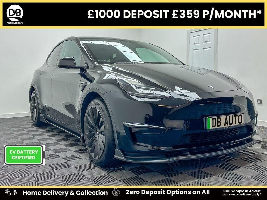 Long Warranty (up to 120k or 8 years) Battery Health Certified 93 % Interior Styling - Alcantara interior to replace the Wood effect. Optional Upgrades - Wheel Caliper Painting This 2022 Tesla Model Y Long Range offers an exceptional electric driving experience with its impressive 331 mile maximum range. As an electric vehicle, it boasts a Four Wheel Drive drivetrain powered by an 85 kWh battery. Charging at home using a 7kW charger will take approximately 12 hours for a full charge, while rapid public charging can take you from empty to 80% in as little as 25 minutes. The Model Y Long Range stands out with its remarkable acceleration, achieving 0 to 60 miles per hour in just 4.8 seconds, demonstrating its dynamic performance. This variant also features a large boot space, providing ample room for luggage and shopping. These highlights indicate that this Tesla Model Y offers superior performance and practicality compared to many other vehicles in its class. All our cars come with a minimum 9 months service and for further peace of mind DB Automotive offer a 2 Year PWarranty. Please contact the DB Team on 0113 4871111 A £595 arrangement fee is charged for using lenders outside of our finance panel. There is no charge for using your own funds. The vehicle data displayed highlights the typical specification of the most recent model of this vehicle. This specification is sourced from leading industry suppliers CAP/HPI. We offer this information in good faith however cannot guarantee the accuracy of any specification/information supplied by 3rd party providers. The specification can vary. You must physically check the specification of the vehicle on site prior to purchase. The specification & features on this website do not form part of the buying contract. *All offers are subject to change at any time due to market and availabile