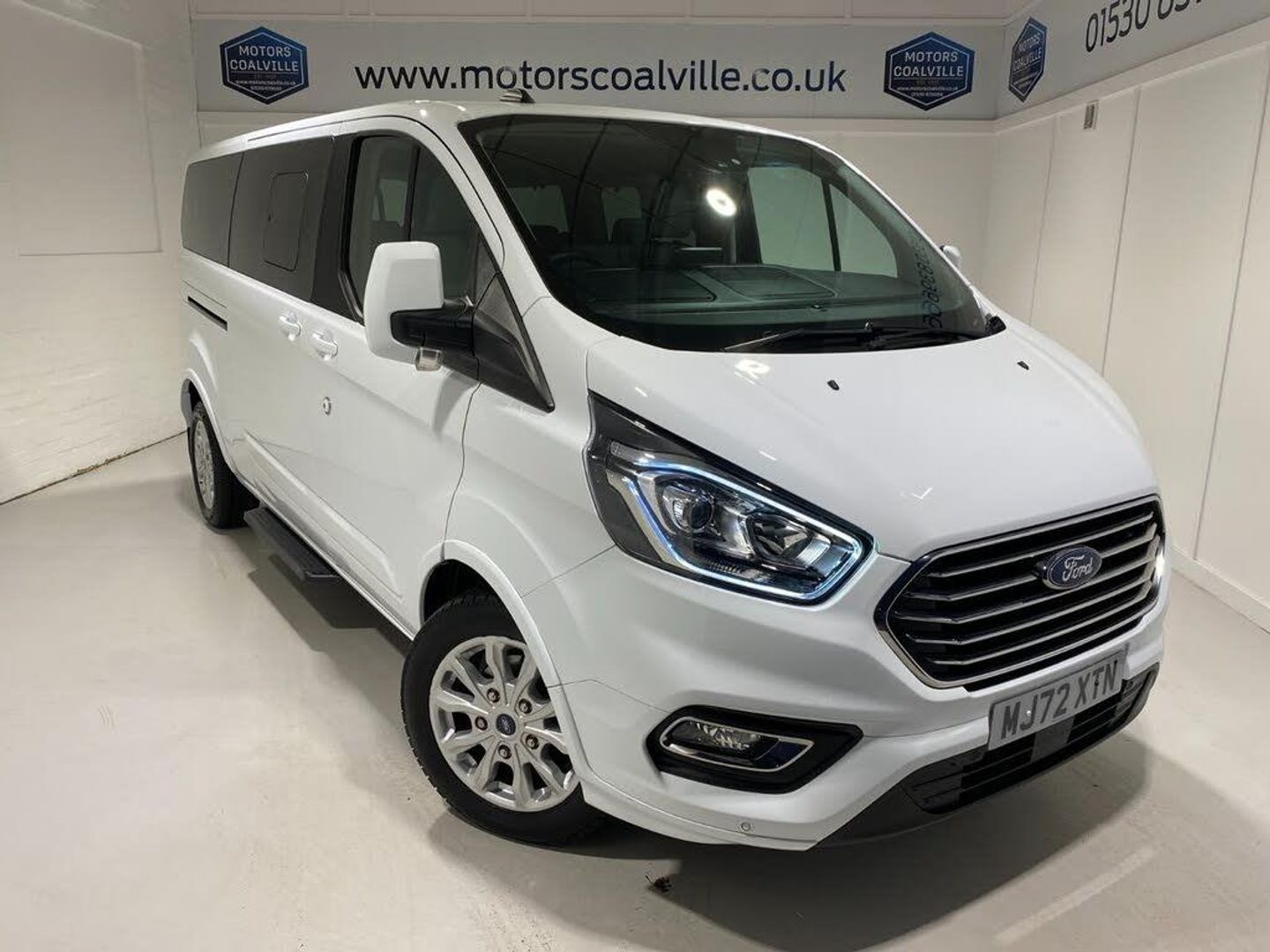 2022 72 Reg Ford Tourneo Custom 320 EcoBlue 2.0 TDCi (130PS) TITANIUM LWB AUTOMATIC**9 SEATER**HIGH SPEC**. Frozen White with FULL LEATHER interior, REAR CAMERA, ICE PACK 25 including DAB, Ford SYNC 3 TOUCHSCREEN SATELLITE NAVIGATION with Apple Car Play, Android Auto, Intelligent Adaptive Cruise Control, Emergency Assistance Bluetooth, Voice Control System, AppLink, audible text messaging and privacy mode, FordPass Connect modem, two USB connectivity ports with iPod® functionality, remote audio controls, includes ten speakers, HEATED FRONT SEATS, 17 inch alloy wheels, FRONT and REAR PARKING SENSORS, remote central locking, front electric windows, privacy glass, electrically operated, heated and power folding mirrors, auto lights and wipers, LED daytime running lights, front fog lights, quickclear heated front windscreen, 12,757 miles (MJ 72 XTN).