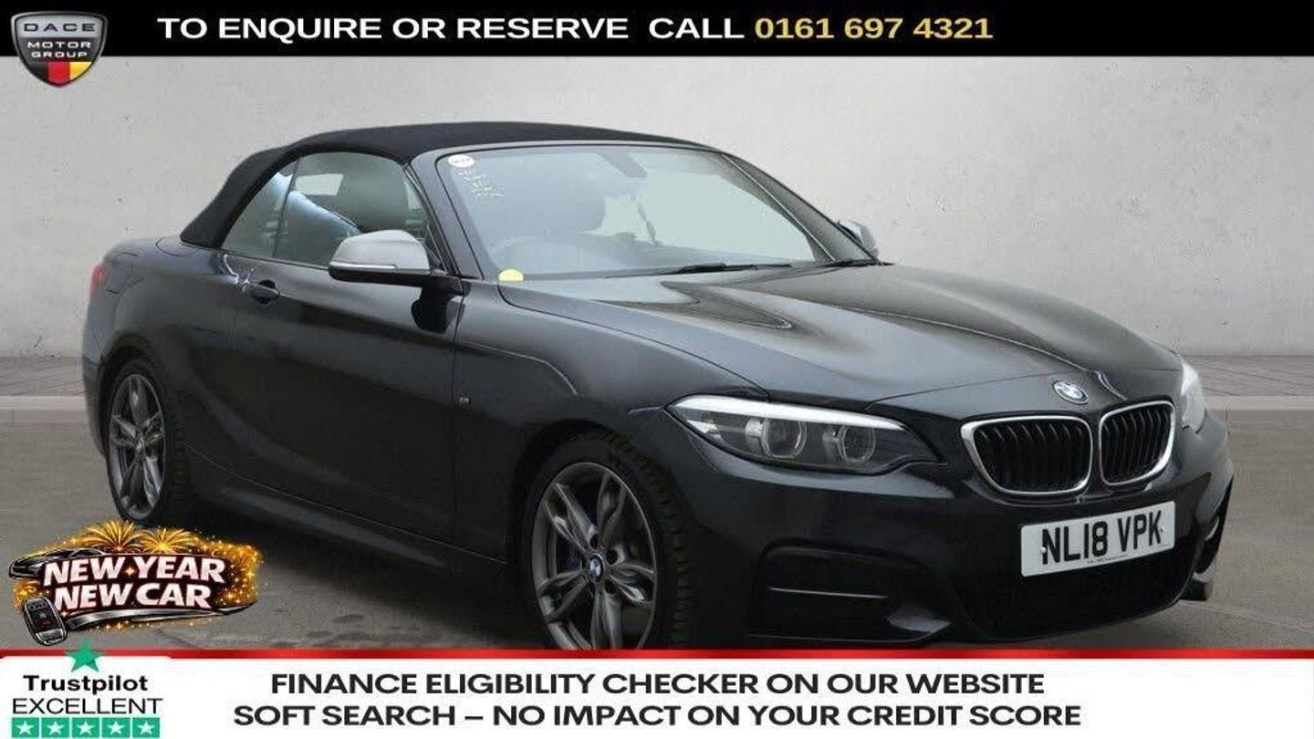 12V Power Socket - Centre Console, 12V Power Socket - Passenger Footwell, 18in Alloy Wheels - M Light Double Spoke - Ferric Grey - 436M, Access to BMW Connected Plus (12 Month Subscription From New), Acoustic Soft-Top in Anthracite, Active Differential Brake - ADB Sport - Electronic Differential Lock in DSC-Off Mode, Air Conditioning - Automatic with Two-Zone Control, Airbags, Airblades - Ferric Grey, Alarm System - Thatcham 1 with Remote Control and Engine Immobiliser, Ambient Lighting - Switchable, Armrest - Front with Sliding Adjustment, Automatically Dimming Rear View Mirror, Battery Age Recognition Function, Battery Safety Cut Off, Black Sapphire, Bluetooth Hands-Free Facility with USB Audio Interface and Audio Streaming, BMW ConnectedDrive Online Services, BMW Emergency Call, BMW Mobility System, BMW Navigation, BMW Professional Radio with Single CD Player - with MP3 Playback Compatibility, BMW TeleServices, Brake Pad Wear Indicator - Front and Rear, Bumper System - Front and Rear, Central Locking Switch - Doors - Fuel Filler Cap - Luggage Compartment, Check Control Warning System for Monitoring of Lights and Door-Luggage Compartment Open Warning, Child Seat ISOFIX Attachment for the Two Outer Rear Seats, Condition Based Service, Crash Sensor, Cup Holders x2 with Inlay Mat, DAB Digital Radio, Dakota Leather - Black with Black Interior, Direction Indicator - Side Repeaters - Integrated in Exterior Mirrors, Direction Indicator Lights - Clear Lenses, Door Mirrors - Ferric Grey Housing, Door Sill Finishers - M240i Designation, Drive Performance Control - ECO PRO - Comfort - Sport - Sport Plus, DSC - Dynamic Stability Control Plus, Dynamic Brake Lights, Electric Windows - Front and Rear with Open-Close Fingertip Control - Anti-Trap Facility and Comfort Closing Function, Engine Cover with BMW Roundel and TwinPower Turbo Designation, EPS - Electric Power Steering, Exhaust Tailpipes - Dark Chrome - Twin - Round - Split, Extended Lighting, Extended Storage, Exterior Mirrors Electrically Adjustable, Exterior Parts in Body Colour, Exterior Trim - High-Gloss Shadowline, First Aid Kit and Warning Triangle, Floor Mats - Velour, Full Black Panel Display, Gearshift Lever with M Designation - Short-Shift, Glove Box Handle with Chrome Surround and Key Lock, Handbrake Lever and Gear Lever Knob in Leather, Heat Protection Glazing with Green Tint, High Grip Tyres, High Level Third Brake Light, Instrument Cluster, Interior Comfort Package, Interior Lighting - Front Centre Over Interior Mirror and Rear Centre, Interior Trim - Aluminium Hexagon Trim Finishers with Estoril Blue Matt Highlight, Kidney Grille - Chrome Extra-Wide Eight High-Gloss Black Vertical Slats, Lashing Eyes in Luggage Compartment at Sill x2, Launch Control, LED Headlights, LED Rear Light Bars, Lights-On Warning by Audio Warning Signal When Ignition is Switched Off, Locking Wheel Bolts, Luggage Compartment - Light, Luggage Compartment Access via BMW Roundel, M Aerodynamic Bodystyling with Airblades in Ferric Grey - No Front Fog Lights, M Logo Designation in Unique Dark Chrome on Left and Right Front Wings, M Sport Braking System, M Sport Suspension, Model Designation, Multifunction Controls for Steering Wheel, OBC - On-Board Computer, Oil Temperature Display via On-Board Computer Shown in Central Screen in Instrument Cluster, Optimum Shift Indicator, PDC - Park Distance Control - Rear, Personal Profile - Extended, Rain Sensor with Automatic Headlight Activation, Real Time Traffic Information, Rear Fog Light, Rear Mounted Aerial, Remote Control with Integrated Key with Insert in Blue, Remote Services, Reversing Light in Rear Light Clusters, Seat Belt Security Check for Driver and Front Passenger, Side Armrests - Front and Rear Integrated into Door Trim, Side Impact Protection, Sport Seats - Front, Start-Stop Button with Comfort Go Keyless Engine Start and Auto Start-Stop Deactivation Button, Steering Wheel - Gearshift Paddles, Steering Wheel - M Sport Leather Multifunction Finished in Nappa Leather, Steering-Wheel Column Adjustment - Manual, Storage Compartment - Rear Centre Console and in Door Trim - Front, Sun Visors with Vanity Mirrors and Ticket Holder, Three-Point Seat Belts - All Seats, TPMS - Tyre Pressure Monitoring System, Twin Horns, Variable Sport Steering, Visible VIN, Welcome Light