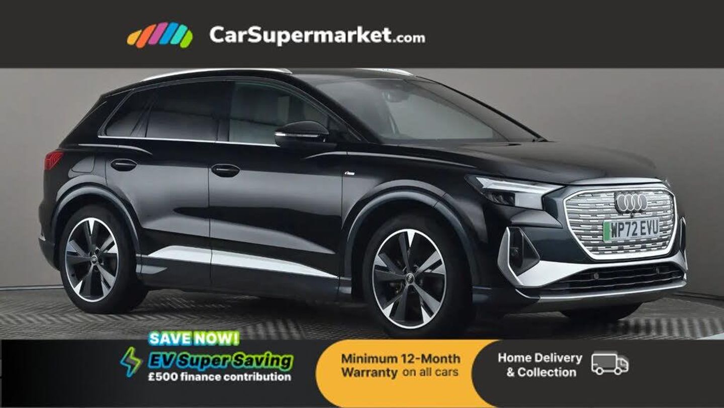 Apple CarPlay/Android Auto, Audi Virtual Cockpit, Bluetooth, Traffic Sign Recognition, Lane Departure Warning, Sat Nav, Digital Radio, Privacy Glass, Heated Front Seats;With only one owner and a clear vehicle history, this 2022 Audi Q4 e-tron S line presents a superb ownership proposition. This electric SUV boasts a 55 kWh battery offering a maximum range of 211 miles when new, and benefits from a recent service in November 2024 at 15,419 miles. With services due every 24 months, this car offers a FULL service history. Its MOT is valid until November 2026, and with just 22,075 miles on the clock, it is considered low mileage for its age. Inside, you will find comfortable heated front seats and a Bluetooth interface for seamless connectivity.