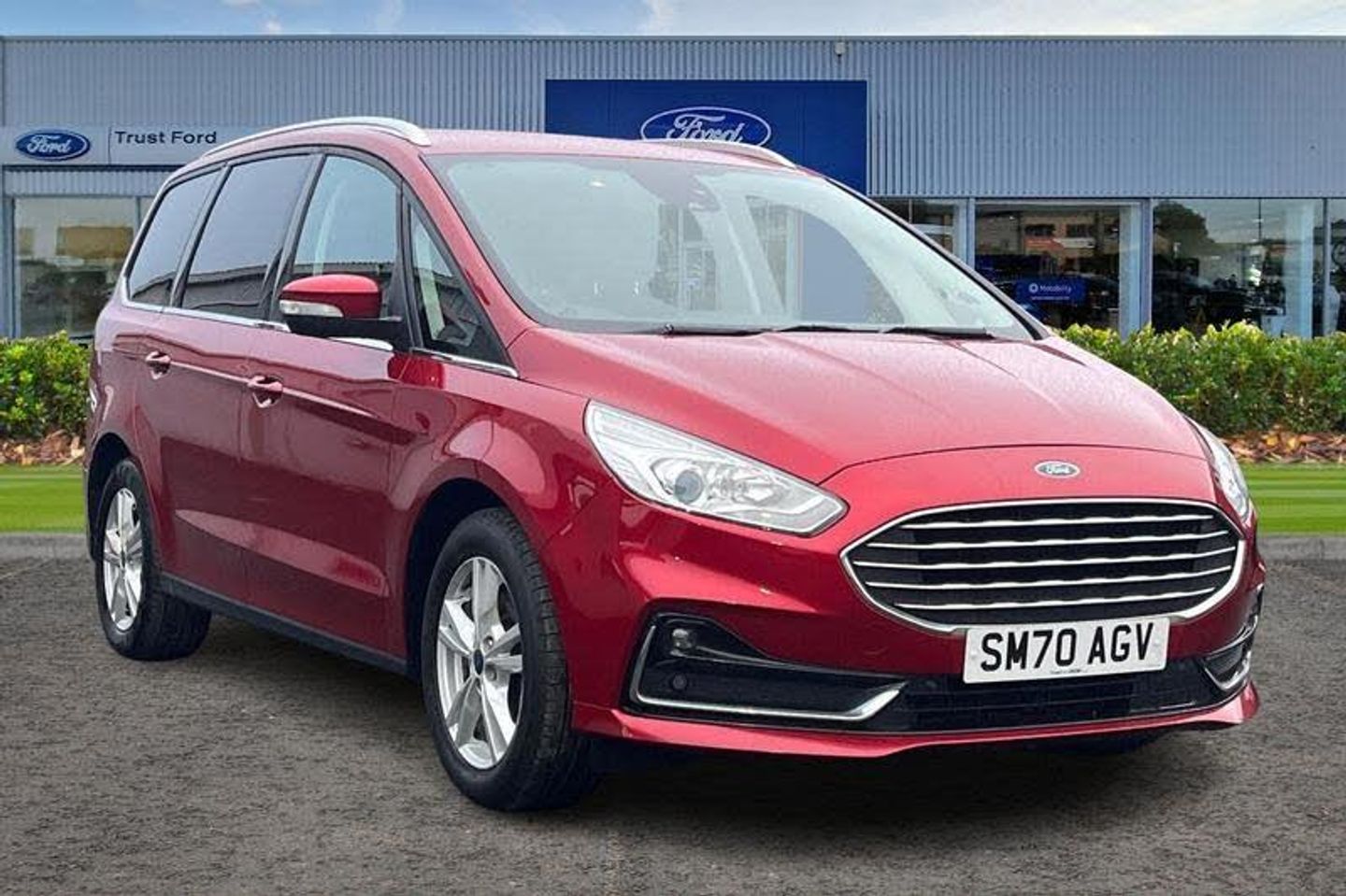 'Ford Power' starter button, 10.1 semi digital cluster, Easy fuel capless refuelling system, eCall emergency call system, Ford pass connect embedded modem, Front and rear parking sensors, Hydraulic PAS, Lane keeping aid - Driver impairment monitor, active steering with lane departure warning, Lights on warning, Outside temperature display, Traffic sign recognition, Trip computer, Auto dimming rear view mirror, Auto high beam assist, Automatic headlights, Automatic wipers with variable sensitivity adjustment, Body colour bumpers, Body colour door mirrors, Chrome trim to lower side windows, Dual exhaust pipes, Electric front and rear windows + one touch + global open/closing, Front fog lights, Halogen headlight with cornering lights, LED daytime running lights, LED rear lights, LED third brake light, Lower front grille with chrome surround, Power folding and heated door mirrors, Quickclear heated windscreen, Rain sensor, Rear privacy glass - dark glass to rear windows, Rear side wing doors, Silver roof rails, 2 height adjustable headrests - 3rd row, 230V power outlet in centre console, 2nd row reading lights, 3 height adjustable headrests - 2nd row, 3 individual fold flat 2nd row seats, 3rd row rear seats with manual fold flat, slide/recline and manual easy entry, Ambient interior lighting (excludes 2nd row footwell), Driver/passenger sunvisors with illuminated vanity mirrors + covers, Dual zone air conditioning, Floor mats in all three rows, Front door scuff plates, Front headrests, Front seat armrests, Front seat storage pockets, Front seatback tables, Front sports seats, ISOFIX attachments for child seats in 2nd row, Leather gear knob, Leather trimmed steering wheel, Manual adjustable front seats + lumbar support, Overhead console with child observation mirror, Pollen filter, Reach + rake adjustable steering column, Rear cupholders, Single passenger seat, Sunglasses storage, 3 point seatbelts on all seats, ABS, Child proof door locks, Driver and passenger airbags, Driver and passenger side airbags, Drivers knee airbag, Electric handbrake, Electronic brake force distribution, ESP with traction control + emergency brake assist, Pre-Collision assist with AEB, Seatbelt warning, Side curtain airbags, Tyre pressure monitoring system