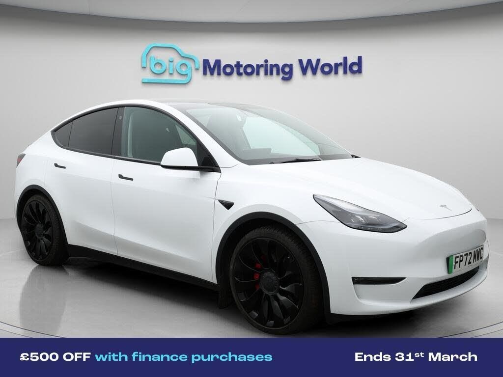 £500 towards your finance depo-Our Tesla Model Y is finished in White. Specification includes a range of fantastic features including £500 towards your finance deposit, Panoramic Roof, All Wheel Drive, 21'' Alloy Wheels, Leather Seats, Satellite Navigation, Privacy Glass, Heated Seats, Wireless Phone Charging, Rear View Camera Specification information is supplied by CAPHPI and may vary to the actual car. This data does not form any part of a buying contact. Please check specification prior to purchase in-store. The MOT is valid until January 2027, visit bigmotoringworld.co.uk for more photos, a 360 tour, service history and a free HPI report.Were BIG on peace of mind and this White Tesla Model Y has completed our comprehensive 200 point inspection and passed all checks. Its ready for you to drive away with immediate collection in-store. We include a 90-day warranty as standard plus an option to extend for up to 3 years.Reserve this car exclusively for you, safely and securely at bigmotoringworld.co.uk, with a fully refundable £99 deposit. Test drive before you buy, with no commitment, no hassle and a completely haggle free experience. Still searching and want to see thousands more cars? We are BIG on choice with over 8000 cars to choose from.Visit our award winning web site bigmotoringworld.co.uk.Were Big Motoring World and were BIG on what matters to you.