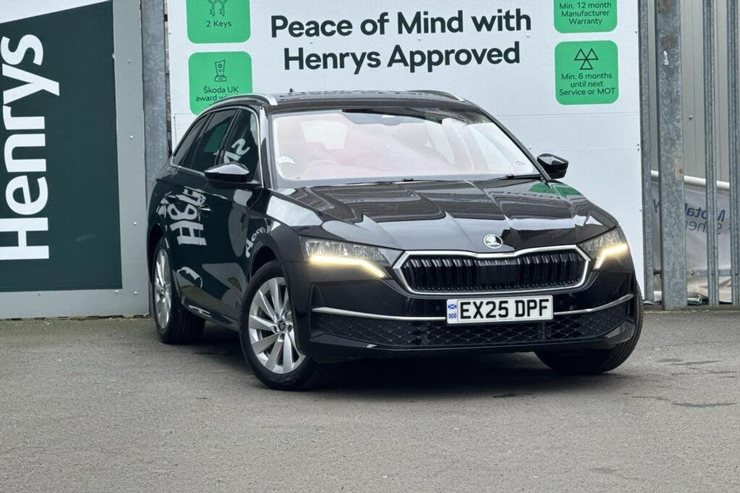 Pearl effect paint, Pearl - Black magic, Aero front windscreen wipers with intermittent function, Electric front and rear windows, Heated rear windscreen, Rain and light sensors, Rear privacy glass, Rear window wiper, Body colour bumpers, Body colour door mirrors and handles, Chrome grille surround, Chrome roof rails, Chrome strip in lower front bumper, Chrome window surrounds, Ice scraper in fuel cap, Rear side wing doors, Rear spoiler, High level third brake light, LED daytime running lights, LED Headlights, Logo projection in front doors, Rear fog light on one side, Electronic parking brake, ESC including ABS, EBV, MSR, ASR, EDS, HBA, DSR, Hill hold assist, Drive mode selection, Electro-mechanical power steering, Front assist system, Traffic sign recognition, Turn Assist, Auto dimming rear view mirror, 3x3 point rear seat belts, Alarm with interior monitoring, tilt sensor and back up horn, Curtain airbags and front side airbags, Driver and front passenger airbags, Drivers knee airbag, Front central airbag, ISOFIX on front passenger seat and outer rear seats, Passenger airbag deactivate switch, Three point seat belts in front and rear, Two tone horn, Tyre pressure monitor, Visual and acoustic seat belt reminder, Warning reflectors in front door, Voice control system, 13'' touchscreen display with navigation, DAB Digital radio, 1x USB Typc C port in rear view mirror, 4x USB Type C ports - 2x in front centre console and 2x in rear (45W), eCall emergency system, Wireless charging (15W) with cooling function, Driver fatigue sensor, Traffic jam assist, Virtual Cockpit - 10.25'' digital display, Wireless SmartLink for Apple CarPlay and Android Auto, Chrome air vent surrounds, 3 rear headrests, 3 seat bench in 2nd row, Front head restraints, Heated front seats, Single front passenger seat, Unsplit rear bench seat, split folding backrest with centre armrest with cupholder, Electric auxiliary air heater, 12 volt socket in boot, 4 foldable roof handles, Interior door handles in dark chrome, Jumbo Box storage, Mechanical rear seat release from boot, Steering wheel in black leather with black stitching, Storage compartments in left and right of boot, Sunglasses storage, Ticket holder, Umbrella in door panel, Illuminated glovebox, Luggage compartment lighting x2 lights, Sun visors with mirrors, Comfort package - Octavia Estate, Simply clever package premium with Storage compartment under passenger seat - Octavia, Anti-theft wheel bolts, Keyless start/stop, Remote central locking