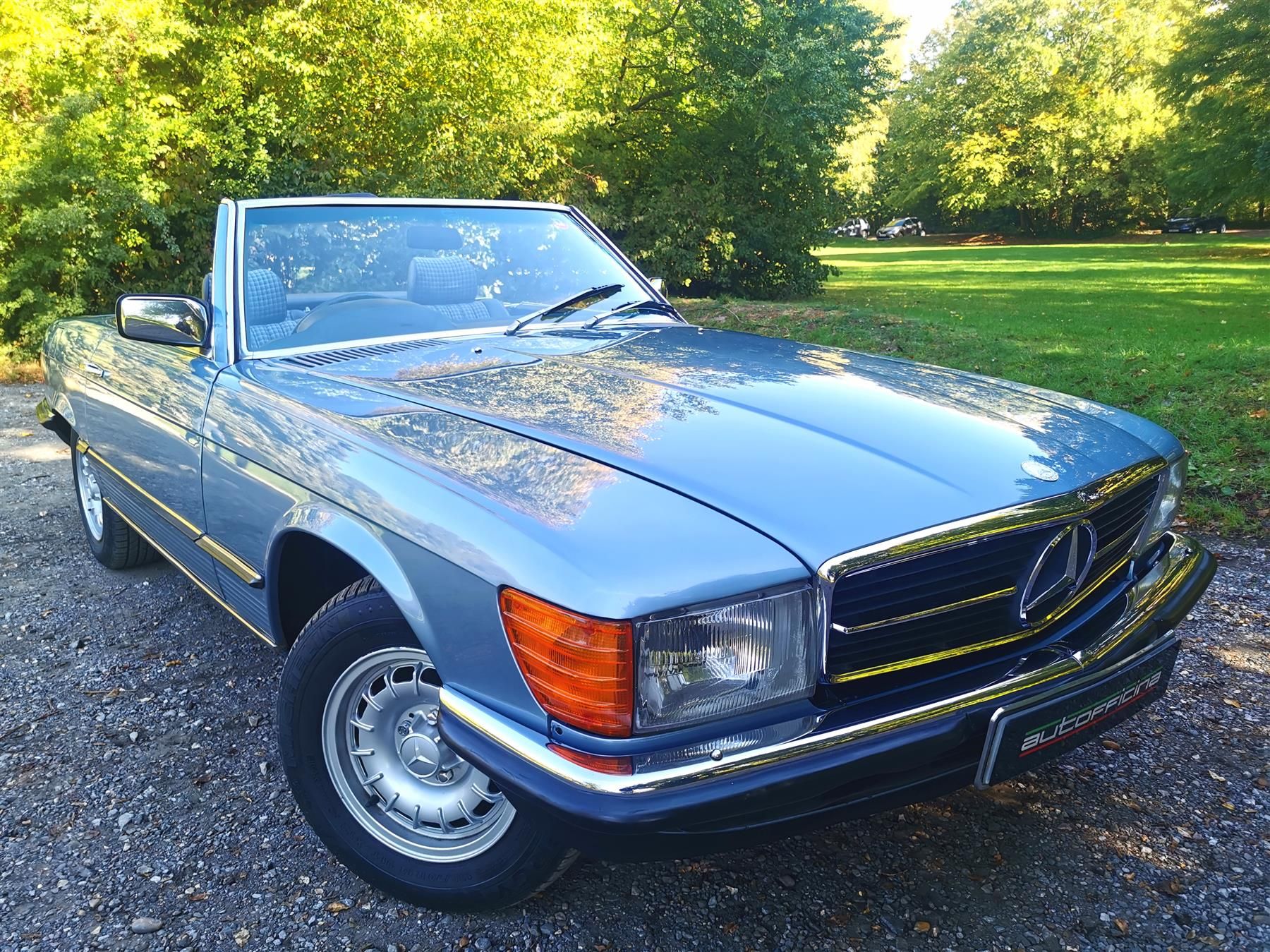 The light blue metallic coachwork just works well with the Royal blue karo cloth/ MB Tex seats and stylish walnut trim. Fitted with Mexican hat alloys.