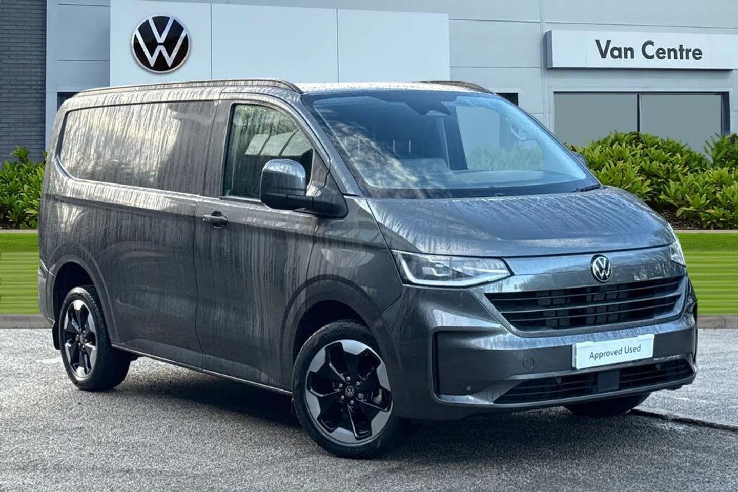 Metallic paint,Roof rails,IQ light LED matrix headlight with coming home and leaving function,Keyless access with safelock,Rear tailgate,3 seat cab package heated - Transporter,Parking package premium - Transporter,Metallic - Graphite dust,Goodyear summer tyres,19" Indianapolis black diamond turned alloy wheels,Heat reflecting side window glass,Body colour bumpers,Body coloured door handles,Body coloured radiator grille,Mud flaps front and rear,Rear Transporter nameplate in black grained decorative trim,Vehicle opening configuration 1x 1st row of seats,2x all doors,Electromechanical brake booster,Electronic stability control,ABS,ASR with deactivation button,hill start assist and brake assist system,Adaptive cruise control,Electromechanical speed sensitive power steering,height and longitudinally adjustable steering column,Lane and blind spot assist with exit warning system,Traffic jam assist,Wrong way driver warning,Body coloured door mirrors,Electrically heated,adjustable and folding door mirrors,Driver and front passenger airbag with front passenger airbag deactivation,Dual tone horn,Front and curtain airbags for driver and front passenger,Seat belt pretensioner for driver seat,Apple CarPlay and Android Auto,Wireless mobile phone charging,12" digital drivers display,13" touchscreen infotainment display with wireless app connect and DAB radio,5G Modem,Dynamic road sign display,eCall emergency system,Preparation of VW connect and connect plus,Alternator - 230A,2x 15-W USB data/charging ports in dashboard and 1x USB-C,1x USB-A center bottom,5 additional USB-C charging ports,Black plastic scuff plate for sliding door in cargo without illumination,Gear selector lever on steering wheel,Glasses compartment in driver side roof,Grab handle on A-pillar passenger side,Illuminated lockable glovebox,Narrow centre console with cup holder and compartment for mobile phone,Overhead storage compartment,Rubber floor covering in cab,Striped fabric upholstery,Cabin interior lighting,12V outlet in centre console and 12V outlet on rear right D-pillar,2x LED lights in load compartment,3x additional super bright LED lights in load compartment,Lashing rings for reinforced floor covering,Without passenger seats in load compartment,4 way height and tilt adjustable head restraints,Anti theft alarm system with interior monitoring in cab,backup horn and towing protection,Electronic immobiliser,Lockable wheel bolts,Preparation for alcohol ignition interlock,5+ Promise