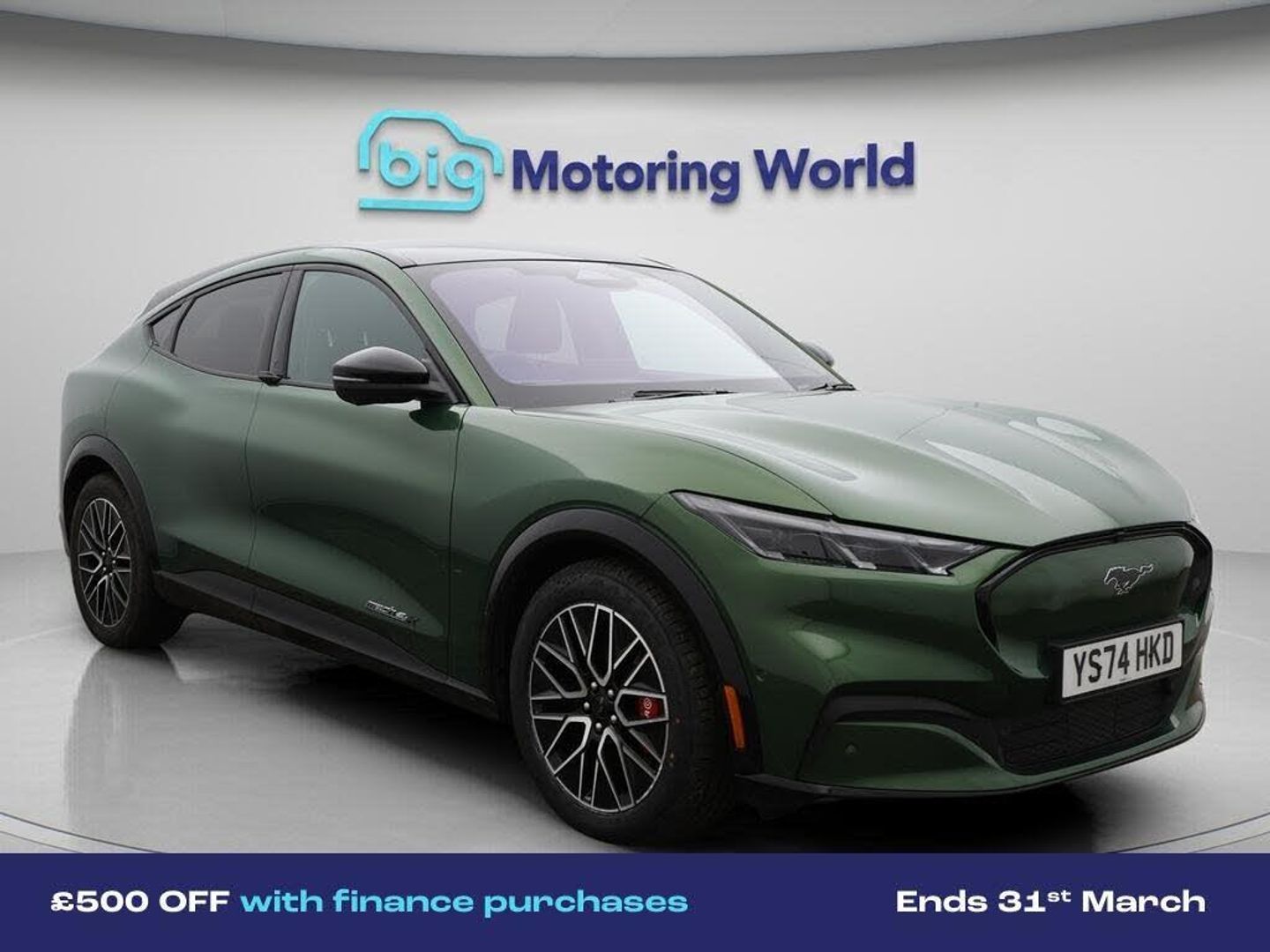 £500 towards your finance depo-Our Ford Mustang Mach-E is finished in Green. Specification includes a range of fantastic features including £500 towards your finance deposit, Panoramic Roof, Leather Seats, Apple CarPlay, Adaptive Cruise Control, Premium, Android Auto, Satellite Navigation, Ford SYNC, Privacy Glass Specification information is supplied by CAPHPI and may vary to the actual car. This data does not form any part of a buying contact. Please check specification prior to purchase in-store. The MOT is valid until October 2027, visit bigmotoringworld.co.uk for more photos, a 360 tour, service history and a free HPI report.Were BIG on peace of mind and this Green Ford Mustang Mach-E has completed our comprehensive 200 point inspection and passed all checks. Its ready for you to drive away with immediate collection in-store. We include a 90-day warranty as standard plus an option to extend for up to 3 years.Reserve this car exclusively for you, safely and securely at bigmotoringworld.co.uk, with a fully refundable £99 deposit. Test drive before you buy, with no commitment, no hassle and a completely haggle free experience. Still searching and want to see thousands more cars? We are BIG on choice with over 8000 cars to choose from.Visit our award winning web site bigmotoringworld.co.uk.Were Big Motoring World and were BIG on what matters to you.