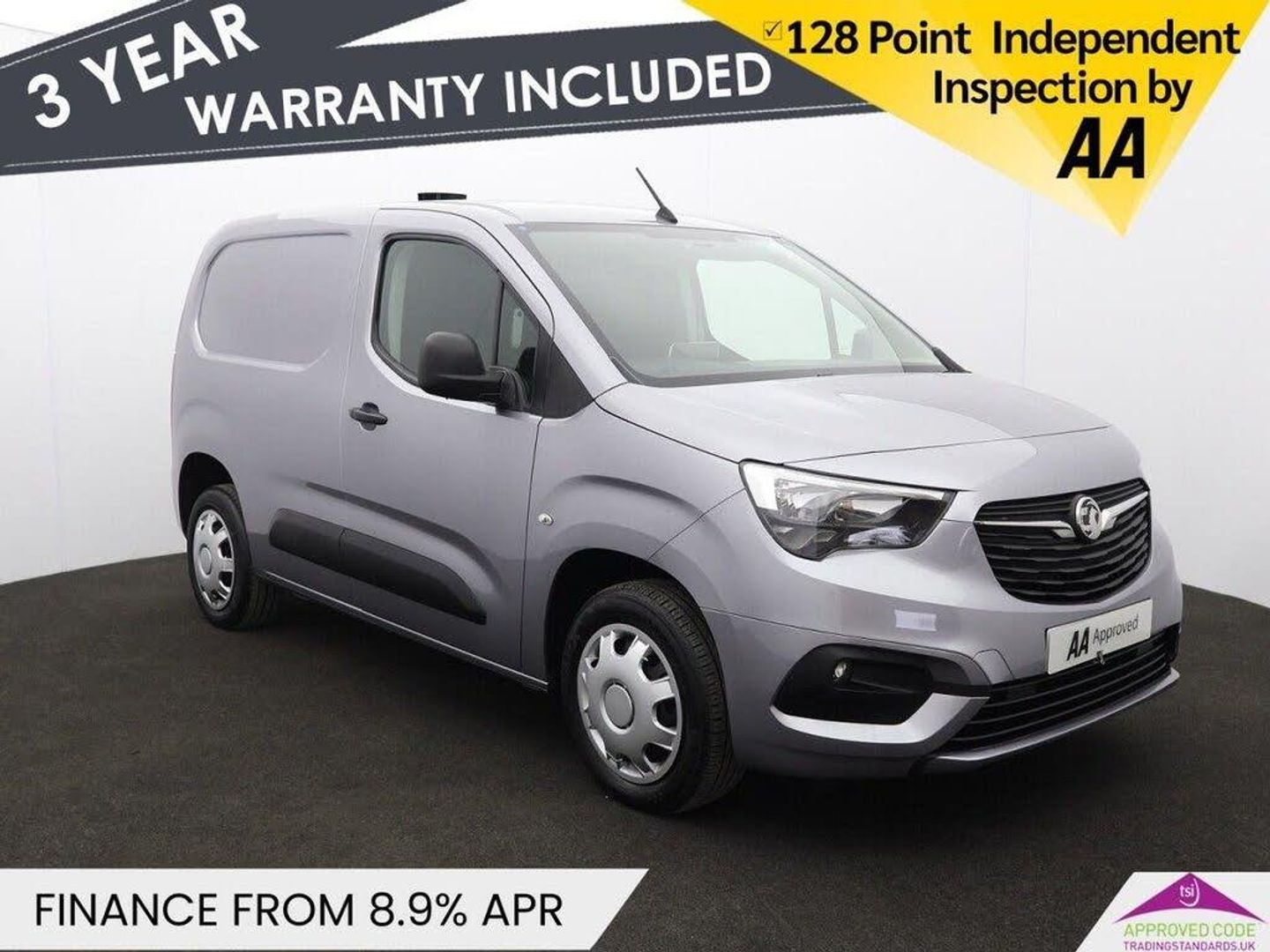 12V Electrical Accessory Socket, Multimedia, USB Connection, Vauxhall Connect, 16in Steel Wheels with Full-Diameter Wheels Trims, Body Coloured Front and Rear Bumpers, Door Mirrors - Body Coloured, Electrically Adjustable-Heated Door Mirrors, Electrically Operated Front and Rear Windows with Safety Autoreverse and One-Touch Up-Down Facility, Rear Fog Light, Reversing Lights, Side Protection Mouldings, Solar Heat Absorbing Windscreen, Tinted Windows, Air Conditioning, Cab Heating with Six-Speed Fan, Dipping Rear-View Mirror, Drinks Holder - Two Facia Mounted, Driver Seat - 6 Way Adjustable, Drivers and Front Passengers Sunvisors, Drivers Top-Lidded Glovebox, Dual Front Passengers Fixed Bench Seat, FlexCargo Pack, Four Adjustable Facia Vents, Full-Height Steel Bulkhead, Full-Width Overhead Storage Shelf with Ambient Lighting, Illuminated Controls, Large Open Storage Pocket Behind Infotainment Screen, Nearside Sliding Side Access Door, Nearside Sliding Side Access Door - Unglazed, Open Storage Compartment Below Glovebox, Rake and Reach Adjustable Steering, Side Window Demist Vents, Six Fixed Floor-Mounted Load Restraint Lashing Eyes, Small Open Storage Compartment Behind Gear Lever, Steering Wheel - Three-Spoke Flat Bottomed Design with Satin Chrome-Effect Bezel, Steering Wheel Mounted Audio Controls, Twin Solid Rear Doors - Unglazed, Two Drinks Holders in Centre Console, Two Large and Small Open Door Pockets, Two Speed Windscreen Wipers with Variable Intermittent Wipe, Vanity Mirror on Rear of Drivers Sunvisor, Windscreen Demist Vents, Automatic Lighting Control, Daytime Running Lights, Fabric - Mistral-Lama Grey, Front Fog Lights, Headlights - Manual Beam Levelling, Lights On Audible Warning, Moonstone Grey, Speed Sensitive Electrically Assisted Power Steering, ABS - Anti-Lock Braking System, Central Facia Display, Cruise Control with Speed Limiter, CSC - Corner Stability Control, Deformation Zones Front and Rear, Driver Information Display, Drivers Airbag, EBA - Emergency Brake Assist, EBD - Electronic Brakeforce Distribution, Electronically Protected Audio Equipment, Energy Absorbing Steering Column, Engine Deadlock Immobiliser, Engine Drag Torque Control, ESP - Electronic Stability Programme, Floor Mounted Handbrake Lever, Fuel Gauge with Low Fuel Warning Light, Hazard Warning Lights, Height Adjustable Lap and Diagonal Inertia-Reel Front Seatbelts, Hill Start Assist, Multi-Function Trip Computer, Parking Sensors - Rear, Reinforced Passenger Safety Cell, Remote Control Central Locking, Remote Control Ultrasonic Security Alarm System, Rev Counter, Shift Up Indication Light, Side Impact Protection Beams, Speedometer, TRC - Traction Control, VIN - Visible Vehicle Identification Number, Water Temperature Gauge with Warning Light