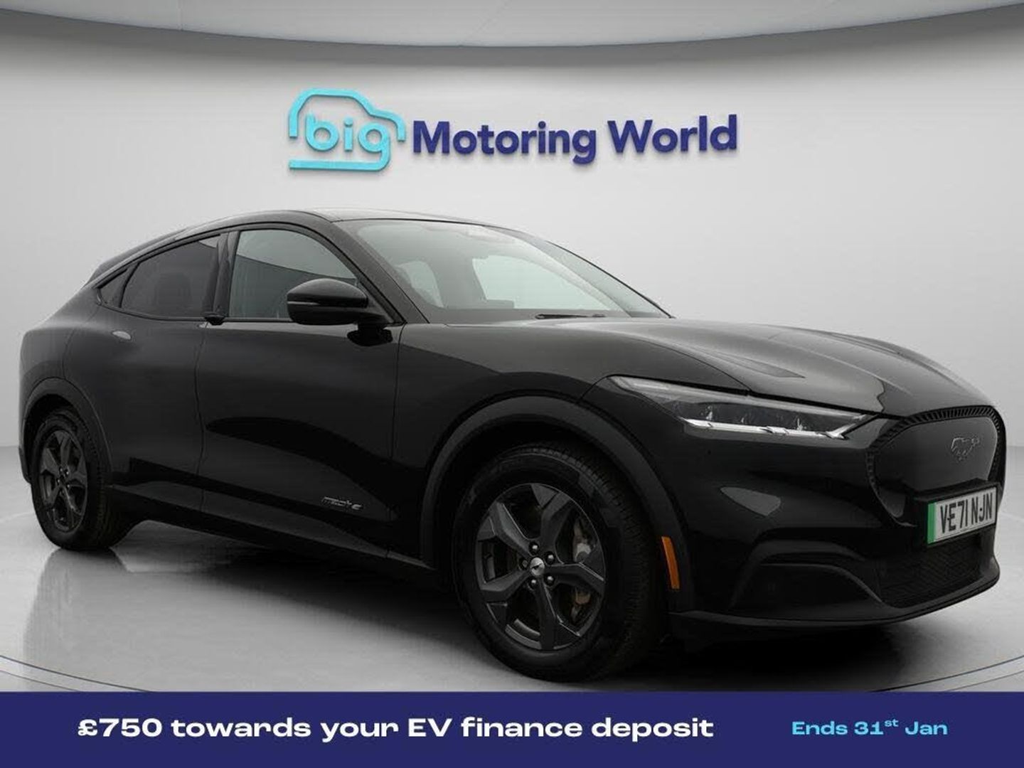 £750 towards your finance depo-Our Ford Mustang Mach-E is finished in Black. Specification includes a range of fantastic features including £750 towards your finance deposit, 18'' alloy wheels, Leather Seats, Apple CarPlay, Adaptive Cruise Control, Satellite Navigation, Ford SYNC, Privacy Glass, Heated Seats, Rear View Camera Specification information is supplied by CAPHPI and may vary to the actual car. This data does not form any part of a buying contact. Please check specification prior to purchase in-store. The MOT is valid until January 2027, visit bigmotoringworld.co.uk for more photos, a 360 tour, service history and a free HPI report.Were BIG on peace of mind and this Black Ford Mustang Mach-E has completed our comprehensive 200 point inspection and passed all checks. Its ready for you to drive away with immediate collection in-store. We include a 90-day warranty as standard plus an option to extend for up to 3 years.Reserve this car exclusively for you, safely and securely at bigmotoringworld.co.uk, with a fully refundable £99 deposit. Test drive before you buy, with no commitment, no hassle and a completely haggle free experience. Still searching and want to see thousands more cars? We are BIG on choice with over 8000 cars to choose from.Visit our award winning web site bigmotoringworld.co.uk.Were Big Motoring World and were BIG on what matters to you.