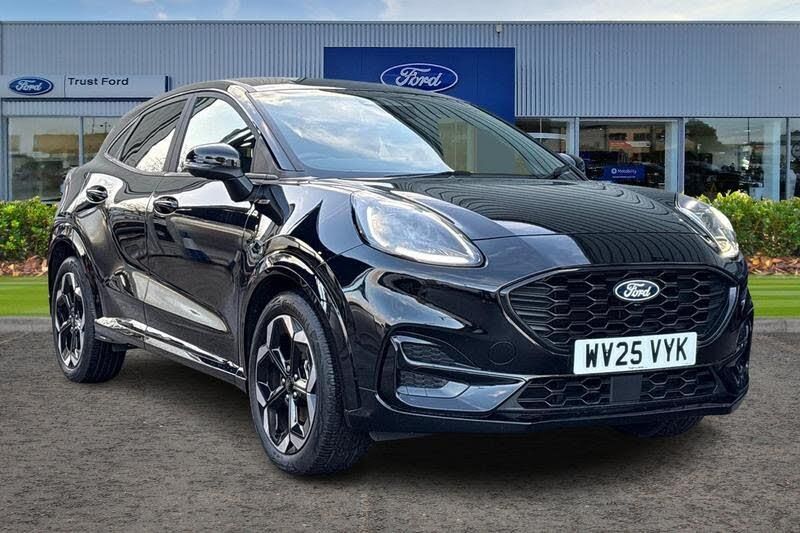 Driver impairment monitor, Emergency call service, Ford easy fuel, Full digital 12.8 instrument cluster, Lane keeping aid with lane departure warning, Power assist steering, Selectable drive modes(Normal, Eco, Sport, Slippery and Trail), Speed sign recognition, Automatic headlights with rain sensing wipers and auto high beam, Front fog lamps, LED daytime running lights, LED rear lamps, LED third brake light, Power foldable heated door mirrors with puddle lamps and puma logo protection, Quickclear heated windscreen, Rear privacy glass, Rear side wing doors, Rear wiper, ST-Line X body styling kit, 3 seat bench in 2nd row, 4 way lumbar support for passenger seat, Centre console with armrest and stowage, Electronic automatic temperature control (EATC), Ford megabox extended bootspace, Front and rear head restraints, Front floor mats, Manual 4 way driver seat adjust with lumbar adjustment, Single front passenger seat, ST-Line X Premium synthetic leather upholstery, 3 rear seatbelts, Child safety lock, Electronic stability control (ESC) and hill start assist, Pre-collision assist with autonomous emergency braking, pedestrian/cyclist detection & post-collision braking, Tyre pressure monitoring system (TPMS)
