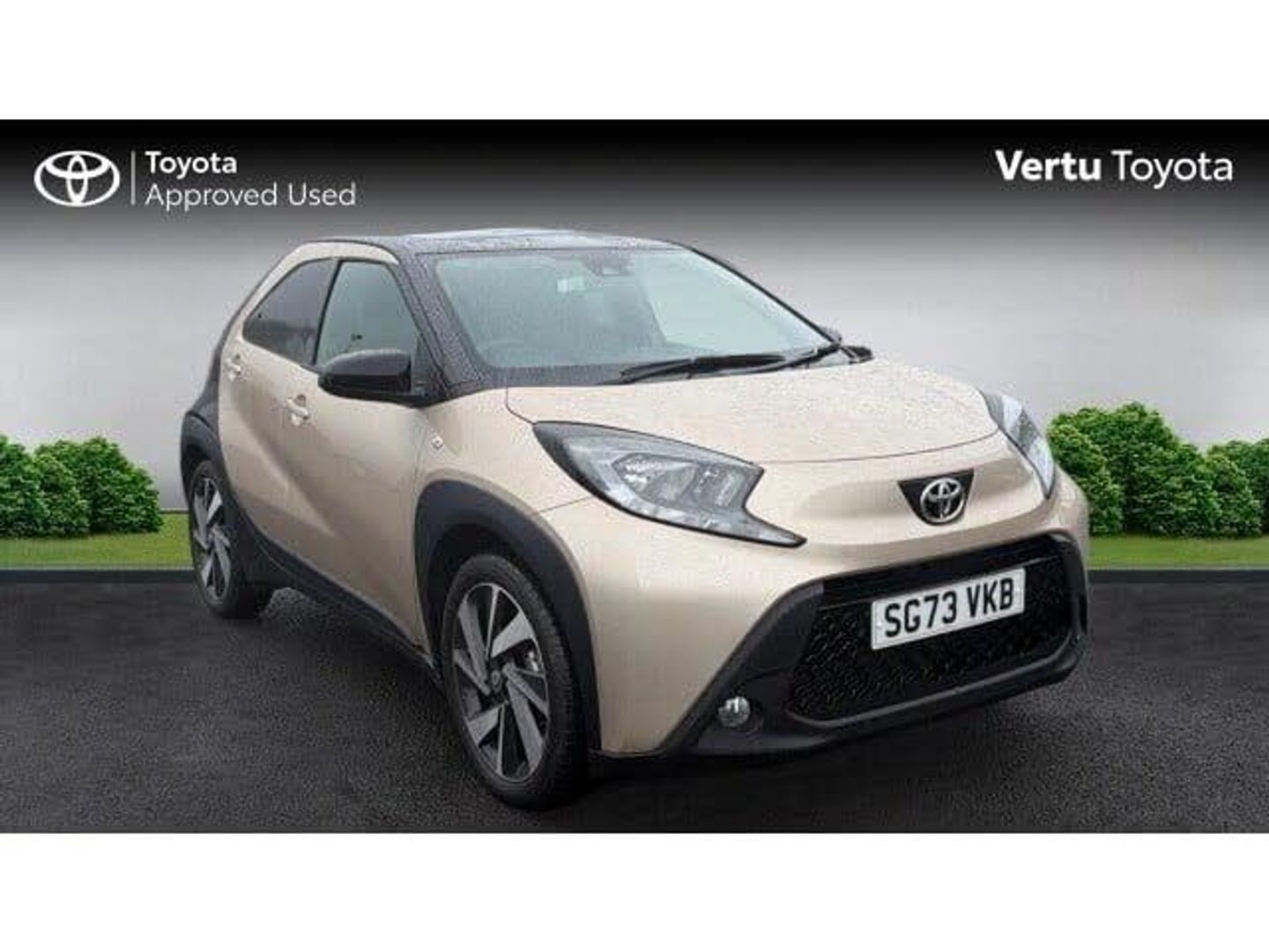 Discover this exceptional 2023 Toyota Aygo X VVT-i Edge, boasting an incredibly low mileage of just 1303 miles, making it a standout choice for its age. This stylish hatchback is powered by an efficient 1.0L Petrol Engine, meeting Euro 6 emissions standards. Inside, you'll find a host of convenient features designed to enhance your driving experience, including Intelligent Adaptive Cruise Control accessible via the steering wheel, automatic headlights that adjust to lighting conditions, and seamless Bluetooth connectivity for your devices.All our vehicles at Vertu Motors come fully prepared with our peace of mind Main Dealer guarantee. Every vehicle is fully prepared both mechanically and cosmetically up to the highest standard which even includes having any tyre replaced that has less than 3mm tread depth (legal limit is 1.6mm). Every vehicle will have a minimum of 9 months MOT remaining and you will not have to service the vehicle for at least 6 months or 6000 miles. We ensure that you will have a minimum of 2 keys and to give you even further reassurance we also supply you with a 3 months complimentary warranty and a 14-day money back guarantee. Our vehicles also come with a full HPI vehicle check assuring you that your new vehicle will have no registered accident claims reported, or any outstanding finance, it also shows the vehicle has not been imported. In addition to this we also do a full Government VOSA report check to verify the mileage on all cars over 3 years old. This service comes free of charge to all our customers unlike other main dealers who charge you an admin fee for this service. We also offer nationwide delivery on all our vehicles, so call today to arrange a viewing / test drive and let one of our professional sales executives give you the Vertu Motors experience.