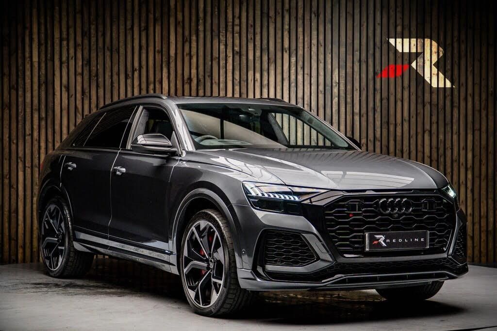 2 USB-C Ports with Charging Functionality in the Rear, 23in Alloy Wheels - 5-Y-Spoke Rotor Design - Gloss Anthracite Black with Diamond Finish, 4-Way Lumbar Support for Front Seats, 4-Zone Automatic Air Conditioning, AMI - Audi Music Interface, Adaptive Windscreen Wipers with Integrated Washer Jets, Advanced Key, Air Quality Pack, All-Wheel Steering, Anthracite Black Door Mirrors, Anthracite Black Styling Pack, Anti-Theft Alarm with Tow-Away Protection, Anti-Theft Wheel Bolts and Wheel Loosening Warning, Audi Beam, Audi Connect (3 Year Subscription From New), Audi Connect Safety and Service - e-call, Audi Connect with Amazon Alexa Integration, Audi HD Matrix LED Headlights in RS Specific Design with Dynamic Front and Rear Indicators, Audi Music Interface in the Rear, Audi Smartphone Interface, Audi Virtual Cockpit - 12.3in High Resolution LCD Display, Auto Dimming and Frameless Rear View Mirror, Black Dinamica Headlining, City Assist Pack, Comfort Front Centre Armrest, Comfort and Sound Package, DAB Digital Radio, Door Mirrors - Electrically Adjustable - Heated - Folding - Automatically Dimming with Memory Function and Integrated LED Indicators with Kerb View Function for Passenger Side, Double Sun Visor, Driver - Front Passenger - Front Side and Curtain Airbag System, Driver and Front Passenger Memory Function for the Electrically Adjustable Front Seats, ESC - Electronic Stabilisation Control inc ABS - ASR and EDL, Electric Sunblinds for the Rear Side Windows and Manual Sunblind for the Rear Window, Electric Windows - Front, Electromechanical Active Roll Stabilisation, Electromechanical Parking Brake, Electromechanical Power Steering, Extended LED Interior Lighting Package - Multi-Coloured, Exterior Audi Rings and RS Q8 Logos with Gloss Black Finish, First Aid Kit and Warning Triangle, Head-Up Display, Headlight Washers, Hill Descent Control, Hill Hold Assist, ISOFIX Child Seat Mounting for Front Passenger, Illuminated Door Sill Trims with RS Logo, Inlays - Polished Oak with Grey Finish, Lane Departure Warning, Light and Rain Sensor, Luggage Compartment Sill Protection in Stainless Steel, MMI Navigation Plus including MMI Touch, Natural Voice Recognition, Operating Buttons in Black - Glass Look, Panoramic Glass Sunroof, Parking System Plus with 360 Degree Display - Front - Rear and Side Sensors, Pedals in Stainless Steel, Power Door Closure, Power Operated Tailgate, Privacy Glass - Dark-Tinted Rear and Rear-Side Windows - From B-Pillar Backwards, RS 3-Spoke Heated Leather Multi-function Sport Steering Wheel with RS Mode Button, RS Adaptive Air Suspension, RS Audi Drive Select, RS Badges on the Front Wings, RS Coming-Leaving Home Animations in Front and Rear, RS Front Super Sport Seats with RS embossed Logo in Valcona leather, RS Manhattan Grey Front Spoiler Lip and Rear Diffuser Insert, RS Specific Bumpers in Full Body Colour, RS Specific Styling, RS Sport Exhaust System, RS Steel Brakes with Black Calipers with RS Logo, RS Styling Package - Grey, Rear Bench Seat Plus, Seat Belt Monitoring, Seat Ventilation and Massage Function for Front Seats, Signature LED Daytime-Running Lights, Standard Pedestrian Protection Measures, Steering Column - Electrically Adjustable with Memory, Tool Kit, Tour Pack, Tyre Pressure Loss Indicator, Tyre Repair Kit, Upper and Lower Interior Elements in Leather, Windshield with Heat Insulated Glass, quattro All-Wheel Drive with Sport Differential, RS Styling Pack - Red, Red Paint Brake Calipers with RS Logo, Inlays - Carbon Twill, Black Roof Rails