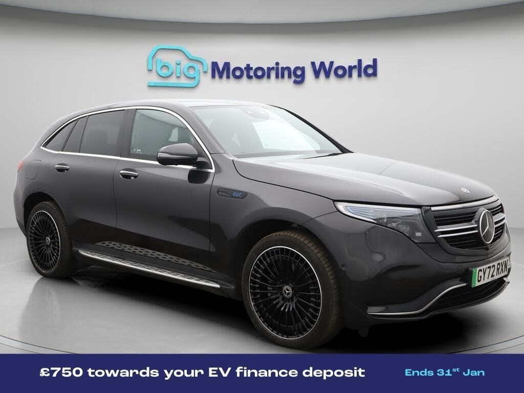 £750 towards your finance depo-Our Mercedes-Benz EQC comes with optional extras worth £1,465. Specification includes a range of fantastic features including £750 towards your finance deposit, Comfort Pack, Premium Plus, All Wheel Drive, Head up Display, 21'' Alloy Wheels, Leather Seats, Air Suspension, AMG body styling, Parking Pack Specification information is supplied by CAPHPI and may vary to the actual car. This data does not form any part of a buying contact. Please check specification prior to purchase in-store. The MOT is valid until December 2026, visit bigmotoringworld.co.uk for more photos, a 360 tour, service history and a free HPI report.Were BIG on peace of mind and this Grey Mercedes-Benz EQC has completed our comprehensive 200 point inspection and passed all checks. Its ready for you to drive away with immediate collection in-store. We include a 90-day warranty as standard plus an option to extend for up to 3 years.Reserve this car exclusively for you, safely and securely at bigmotoringworld.co.uk, with a fully refundable £99 deposit. Test drive before you buy, with no commitment, no hassle and a completely haggle free experience. Still searching and want to see thousands more cars? We are BIG on choice with over 8000 cars to choose from.Visit our award winning web site bigmotoringworld.co.uk.Were Big Motoring World and were BIG on what matters to you.
