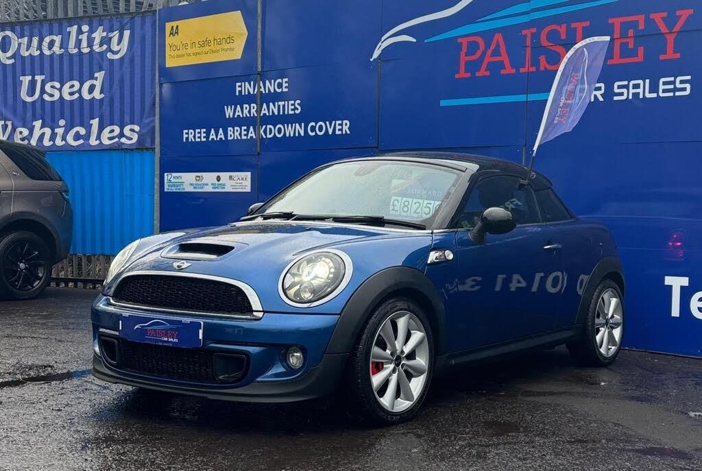MINI Coupe 1.6 Cooper S Auto Euro 5 2dr, , Full Service History, ULEZ Compliant Mileage: 66,840 (Warranted) Owners: 2 Previous Owners Service History: Full Service MOT Valid Until: Full 12 months Keys: 2 Keys ULEZ Compliant: Yes (Euro 6) Warranty: 12Months Included This exceptionally well-maintained Mini Coupe S Auto is in outstanding condition inside and out, boasting a great specification from the factory, including: Automatic Transmission Electric Windows Auto Lights Central Locking Air ConditioningHeated Leather Seats Electronic Power Steering - Speed Related HPI Clear All Documentation PresentQuality Assurance & Extra Benefits:Finance Available Competitive finance options to suit your budget.Part Exchange Welcome Get a fair valuation for your current vehicle.AA Approved Dealership Buy with confidence.Drive Away Same Day 5-Day Insurance Available Courtesy of the AA.Free Home Delivery Up to 25 miles for online orders.Flexible Payment Options We accept all major debit cards.About Paisley Car Sales :We are a trusted, Renfrewshire-Based used car dealership, dedicated to providing high-quality vehicles and outstanding customer service. If this vehicle doesnt meet your needs, we can source one to your specifications. Visit Us: Office 2, Wellington street, Paisley, Renfrewshire, PA3 2JQ Call Us: 0141 366 0010 Website: www.paisleycarsalesltd.co.ukGrab this exclusive web-discounted price while it lasts! Contact us today for more details or to book a test drive. Here at Paisley Car Sales we are always ready to go the extra mile. Don't hesitate to contact us!Vehicle registered: 07/03/2016Buying with Paisley Car Sales Ltd:Welcome to Paisley Car Sales, are a small family run used dealership. We hope you enjoy your experience with us, we encourage you to browse our current stock of cars and if there is nothing that jumps out to you, we are more than happy to source a vehicle on your request. Feel free to get in touch-+1YR MOT+AUTO+FSH