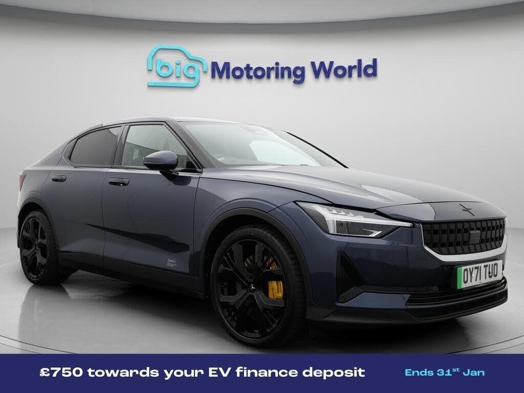 £750 towards your finance depo-Our Polestar Polestar 2 is finished in Blue. Specification includes a range of fantastic features including £750 towards your finance deposit, Performance Pack, Dynamic Chassis Control, All Wheel Drive, Panoramic Roof, Apple CarPlay, Electric Seats, Harman Kardon Speakers, Premium Sound System, Privacy Glass Specification information is supplied by CAPHPI and may vary to the actual car. This data does not form any part of a buying contact. Please check specification prior to purchase in-store. The MOT is valid until October 2026, visit bigmotoringworld.co.uk for more photos, a 360 tour, service history and a free HPI report.Were BIG on peace of mind and this Blue Polestar Polestar 2 has completed our comprehensive 200 point inspection and passed all checks. Its ready for you to drive away with immediate collection in-store. We include a 90-day warranty as standard plus an option to extend for up to 3 years.Reserve this car exclusively for you, safely and securely at bigmotoringworld.co.uk, with a fully refundable £99 deposit. Test drive before you buy, with no commitment, no hassle and a completely haggle free experience. Still searching and want to see thousands more cars? We are BIG on choice with over 8000 cars to choose from.Visit our award winning web site bigmotoringworld.co.uk.Were Big Motoring World and were BIG on what matters to you.