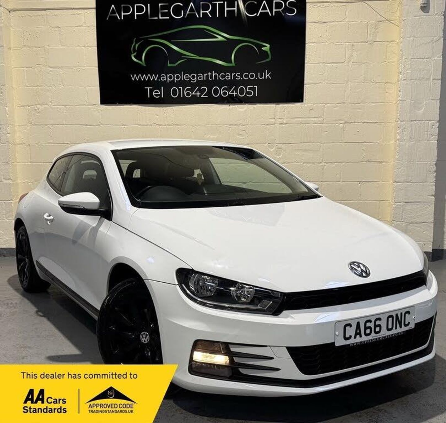 Volkswagen Scirocco 1.4 TSI BlueMotion Tech Hatchback 3dr Petrol Manual Euro 6 (s/s) – 125 PS Registration: CA66ONC | Year: 2017 (66) | Mileage: 76,700 miles Colour: White | Fuel: Petrol | Transmission: Manual This Volkswagen Scirocco combines striking coupe-style design with everyday usability and renowned German engineering. Powered by the efficient yet responsive 1.4 TSI petrol engine producing 125 PS, it delivers a smooth, engaging drive while maintaining excellent fuel economy thanks to BlueMotion Technology. With its low-slung stance, frameless doors and aerodynamic profile, the Scirocco stands out from the crowd. Inside, it offers a sporty, driver-focused cabin with high-quality materials and practical features, making it just as suitable for daily driving as it is for longer journeys. Key Features and Specification: 1.4 TSI petrol engine with 125 PS Euro 6 compliant BlueMotion Technology including Start/Stop and brake energy recuperation 6-speed manual gearbox 3-door hatchback with sporty coupe styling 17-inch alloy wheels Sports seats with height adjustment Leather-wrapped multifunction steering wheel Touchscreen infotainment system DAB digital radio Bluetooth connectivity for hands-free calls and media streaming Air conditioning Cruise control Front and rear electric windows Electrically adjustable and heated door mirrors ISOFIX child seat mounting points ABS, ESP and multiple airbags for added safety This Scirocco offers an excellent balance of performance, efficiency and style, making it an ideal choice for drivers looking for something more distinctive than the average hatchback without compromising on reliability or running costs. Applegarth Cars is a trusted used car dealership dedicated to providing high-quality, pre-owned vehicles at competitive prices. With a strong commitment to customer satisfaction, we offer a diverse selection of cars, from reliable family vehicles to performance and luxury models. We pride ourselves on transparency, fair pricing, and exceptional service. Whether you’re buying, selling, or looking for finance, we make the process smooth and hassle-free. Contact Applegarth Cars today to arrange your viewing or test drive.