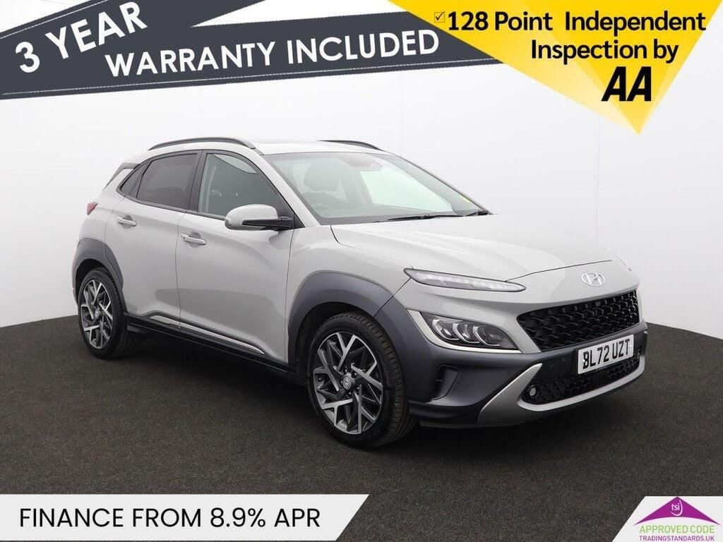 This 2022 Hyundai KONA h-GDi Ultimate is a superb example, boasting a full dealership service history and having had only one owner from new. This Euro 6 compliant model features a 1.6 litre petrol hybrid engine and comes with a long MOT, offering peace of mind for years to come. The Ultimate trim level ensures a wealth of advanced technology, including Blind Spot Collision Avoidance Assist, Smart Cruise Control with Stop and Go functionality, and a helpful Head Up Display. You'll also appreciate the convenience of front parking sensors and the comfort of heated rear seats. The Hyundai KONA h-GDi Ultimate stands out with its impressive fuel economy, achieving a remarkable 55 miles per gallon, which indicates it is more economical than many similar vehicles. Furthermore, its low CO2 emissions and low insurance group highlight its cost effectiveness, making it an attractive choice for budget conscious drivers. This well maintained vehicle offers a blend of efficiency, advanced features, and reassuring provenance. Oakwood Motor Company are an established family run dealership, home of the best used cars in Bury! We have hundreds of cars currently in stock from all your favourite brands including our specialist selection of Audi VW Group vehicles. Our fantastic rates are available on both HP and PCP finance, and we have extended warranties available for up to 3 years for complete peace of mind. Our experienced sales team are on hand to help you every step of the way, so give us a call today to reserve your new car with a refundable £100 deposit. Visit our used car dealership in Bury! We take all reasonable steps to ensure the accuracy of the information supplied in our advertising materials, however on occasion errors may occur. Images used are for illustrative purposes only. Please ensure you take the time to fully inspect your vehicle for specification/features which are important to you, and raise any queries with your Sales Executive.
