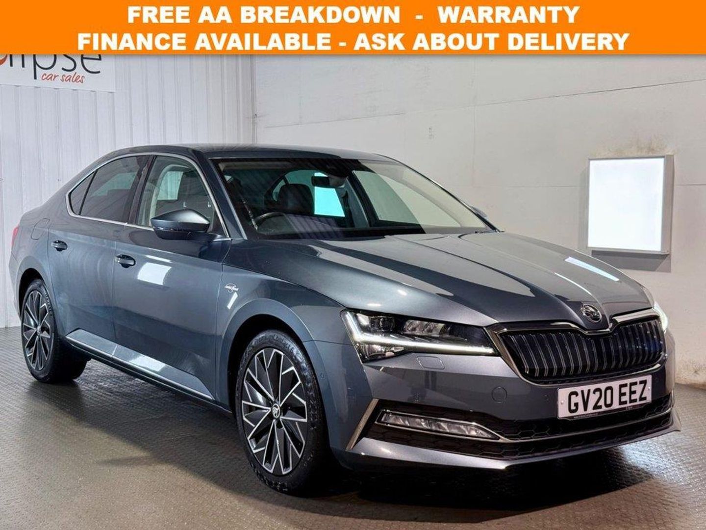 **THIS VEHICLE MAY BE AT OUR 150-CAR STORAGE FACILITY. PLEASE CALL AHEAD TO ARRANGE VIEWING AT OUR WINCHESTER SALES SITE** Skoda Superb 1.4 TSI iV 13kWh Laurin and Klement Hatchback first registered in July 2020 (20 reg). Finished in Quartz Grey with a black leather interior and 18 inch alloy wheels. Spec includes Heated and cooled front memory seats | Drivers Massage seat | heated rear seats | Reversing camera with front and rear sensors and Park Assist | Built in sat nav | adaptive cruise control | Apple car play | Android auto | DAB radio | Heated steering wheel | Heated Windscreen | Powered Tailgate | Three zone climate control | heated electric folding wingmirrors | Selectable drive modes | Bluetooth connectivity. Serviced at 6491 miles | 15823 miles | 26373 miles | 31977 miles | 40521 miles and a cambelt change and service at 49448 miles. Eclipse Car Sales are Proud to be an approved AA dealership. Every car includes 12 Months AA Breakdown Cover, 3 Months National Warranty Included, Upgrade packages available, Part exchange welcome, Debit cards accepted, a range of affordable finance packages available to fit all circumstances, Open 7 days a week, 9am - 5.30pm Monday to Saturday & 10am - 3pm Sundays & Bank Holidays, Contact us on 0238 2028811 or email sales@eclipsecarsales.co.uk . 10amp Mains UK 3-pin Charge Cable - Mode 2,12V Socket on Central Console - Front and Rear,16amp AC Charge Cable for Wallbox or Chargepoints - Mode 3,18in Alloy Wheels - Propus Aero Anthracite,3D Map Navigation,7 Airbags - Front - Front Side - Curtain - Drivers Knee with Front Passenger Deactivation Switch,ACC - Adaptive Cruise Control,Aero Windscreen Wipers with Intermittent Function,Alarm with Interior Monitoring - Tilt Sensor and Back Up Horn,Auto Dimming Rear View Mirror,Blind Spot Detection,Bluetooth,Body Coloured Door Mirrors and Door Handles,CareConnect Including Emergency Call,Chrome Grille Surround with Chrome Rib Elements,Chrome in Rear Diffuser,Chrome Strip Between Rear Lights and Lower Strip on Side Doors,Chrome Window Surrounds,Colour Multifunction Trip Computer,Columbus Touchscreen Satellite Navigation System,Cornering Front Fog Lights,DAB Radio,Decorative Insert - Piano Black,Driver and Front Passenger Seatbelt Warning Light,Driver Fatigue Sensor,DVD Drive,Dynamic Chassis Control - DCC,Dynamic I