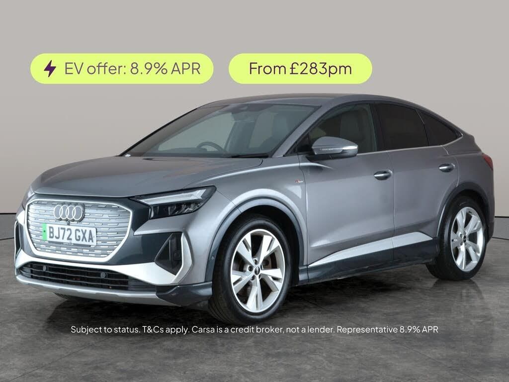 Experience the Audi Q4 E-tron Sportback in sleek grey with stand-out features like an upgraded sound system, MMI Navigation Plus, heated seats, and advanced LED headlights. Enjoy seamless journeys with sat nav, Bluetooth connectivity, and adaptive driving modes. Safety is enhanced with lane departure warning and traffic sign recognition, while the climate control and air conditioning keep you comfortable all year round. Charging leads includeddiscover electric luxury with Audis refined design and technology. 1 service recorded, last serviced on 06/12/2024 at 48,639 miles. MOT to 02/11/2026. Visit our website for service history, online valuation, full vehicle specification plus multiple images. Certain features listed may be available via subscription packages at extra costs, please consult with Audi for details. This vehicle is VAT qualifying. Any feature/option specified here is from 3rd party data. We cannot guarantee the accuracy of any specification supplied by a 3rd party. We recommend that you physically check the specification of the vehicle on site prior to purchase. This information does not form part of the buying contract. Terms & Conditions apply. We have over 2,000 cars available from our 10 national branches, check our website to see all our stock. Our Trustpilot rating is 4.4/5 with over 9,000 reviews.