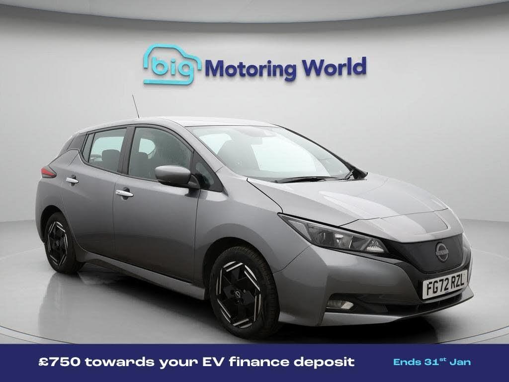 £750 towards your finance depo-Our Nissan Leaf is finished in Grey. Specification includes a range of fantastic features including £750 towards your finance deposit, Rear View Camera, Bluetooth, Blind Spot Assist, Cruise Control, Climate Control, DAB Radio , Touch Screen Control, Rain Sensing Wipers, USB Interface Specification information is supplied by CAPHPI and may vary to the actual car. This data does not form any part of a buying contact. Please check specification prior to purchase in-store. The MOT is valid until August 2026, visit bigmotoringworld.co.uk for more photos, a 360 tour, service history and a free HPI report.Were BIG on peace of mind and this Grey Nissan Leaf has completed our comprehensive 200 point inspection and passed all checks. Its ready for you to drive away with immediate collection in-store. We include a 90-day warranty as standard plus an option to extend for up to 3 years.Reserve this car exclusively for you, safely and securely at bigmotoringworld.co.uk, with a fully refundable £99 deposit. Test drive before you buy, with no commitment, no hassle and a completely haggle free experience. Still searching and want to see thousands more cars? We are BIG on choice with over 8000 cars to choose from.Visit our award winning web site bigmotoringworld.co.uk.Were Big Motoring World and were BIG on what matters to you.
