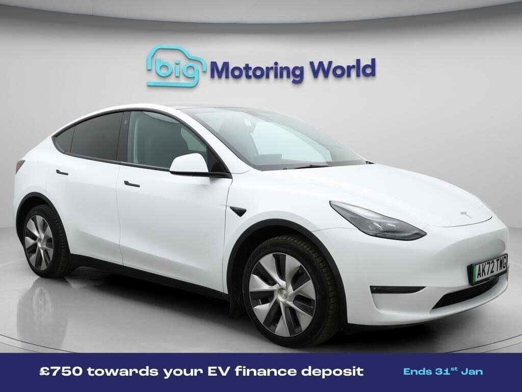 £750 towards your finance depo-Our Tesla Model Y is finished in White. Specification includes a range of fantastic features including £750 towards your finance deposit, All Wheel Drive, Panoramic Roof, Leather Seats, Satellite Navigation, Privacy Glass, Heated Seats, Wireless Phone Charging, Rear View Camera, Heated Rear Seats Specification information is supplied by CAPHPI and may vary to the actual car. This data does not form any part of a buying contact. Please check specification prior to purchase in-store. The MOT is valid until November 2026, visit bigmotoringworld.co.uk for more photos, a 360 tour, service history and a free HPI report.Were BIG on peace of mind and this White Tesla Model Y has completed our comprehensive 200 point inspection and passed all checks. Its ready for you to drive away with immediate collection in-store. We include a 90-day warranty as standard plus an option to extend for up to 3 years.Reserve this car exclusively for you, safely and securely at bigmotoringworld.co.uk, with a fully refundable £99 deposit. Test drive before you buy, with no commitment, no hassle and a completely haggle free experience. Still searching and want to see thousands more cars? We are BIG on choice with over 8000 cars to choose from.Visit our award winning web site bigmotoringworld.co.uk.Were Big Motoring World and were BIG on what matters to you.