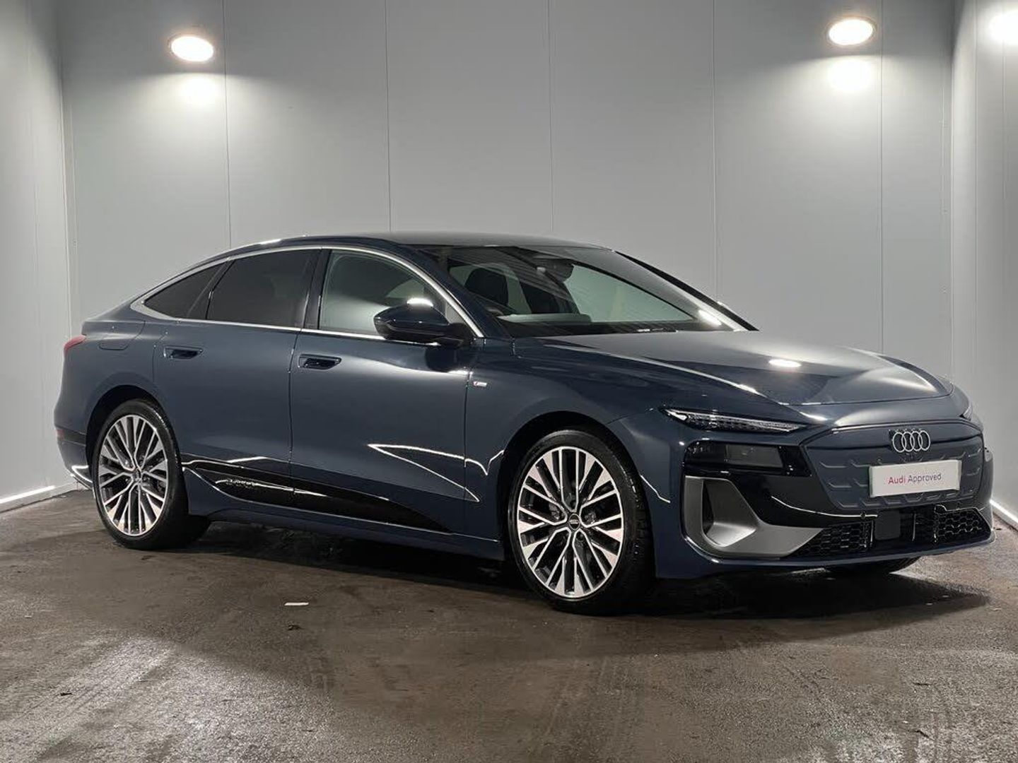 Audi application store, Audi assistant, Audi connect emergency call and service, Audi connect remote and controls, Audi drive select (Balanced/Individual, effeciency, comfort and dynamic), Audi smartphone interface, Audi virtual cockpit plus with 11.9" OLED colour display, Driver attention alert system, Fatigue monitor, Front cross traffic assist, Lane departure warning system, Luggage compartment lid with Electric opening / closing, MMI navigation plus with high resolution 14.5" OLED touchscreen colour display, Progressive steering, Swerve assist and front turn assist, USB ports with charging function in the first and second seat row - 15W output, 11 kW AC onboard charger, 2 charging ports - Charging port via charging (mode 2 and mode 3) + Charging port via DC charging (mode 4) driver side, Compact e-tron charging system, DC On-board charger 225kW, Dynamic suspension, Household plug type G for the e-tron charging system, Industrial connector CEE 32A, 230V, long and straight for the e-tron charging system, Mode 3 charging cable for public charging, 22 KW (AC), Wall mounted bracket for compact e-tron charging system, Audi sound system - 10 loudspeakers including centre loudspeaker and subwoofer, DAB Digital radio, Smartphone compartment with wireless charging, Acoustic glazing for front door windows, Auto dimming rear view mirror, Body colour radiator grille, Body coloured door handles, Body coloured door mirrors, Daytime running lights, Door sill trims with aluminium inlays in front with illuminated, Electric charging cover, Electrically adjustable heated and folding + automatically dimming exterior mirrors, Electrically operated frunk, Headlight cleaning system, High beam assist, Illuminated audi rings in rear, LED headlights plus, LED rear lights pro, LED third brake light, Privacy glass, Rear side wing doors, Rear wiper, S line exterior - Accents in chrome look matt anthracite in the front and rear area , Diffuser in black, White rhombus logo projection light in exterior mirrors, Window trim strips in aluminium look, Windscreen with heat insulating and acoustic glazing, 3 spoke flat bottomed multi-function leather sport steering wheel with gear shift paddles, 3-zone deluxe automatic air conditioning, 4 way electrically adjustable lumbar support for driver and front passenger, 40/20/40 split folding 3 rear seat bench in 3 parts with rear centre armrest, Auxiliary air conditioning, Black carpets, Black cloth headlining, Black front and rear floor mats, Front centre armrest adjustable angle with four settings, Front head restraints, Heat pump, Heated front seats, Manual steering wheel adjustment, Manually adjustable front seats, Rear cup holders, Rear headrests, Single front passenger seat, Stainless steel pedals and foot rest, Steering wheel with trim in chrome look, S emblem, steering wheel grips in perforated leather and contrast stitching, Upper and lower interior elements in artificial leather plus, upper part of the instrument panel in black with contrast stitching, Ambient lighting pack - A6 E-TRON, Assist package drive and park - A6 E-TRON, 3 point seatbelts on all seats, Acoustic vehicle alerting system, Airbags - Front side, front and rear including head, Convenience key with safelock, First aid kit with warning triangle and high visibility vests, Front emergency brake assist, Front passenger airbag deactivation, Hill hold assist, ISOFIX child seat mounting for front passenger seat and ISOFIX child seat mounting with Top Tether for outer rear seats, Manual child proof rear door locks, Rear seat alert, Side airbags in front and rear with head airbag system and front interaction airbag, Standard steel disc brakes front and rear, Tyre pressure loss indicator, Anti theft alarm, Anti theft wheel bolts, Digital key, Accent surfaces and control buttons in gloss black, Black dashboard, Matt brushed aluminium inlays with linear embossing anthracite, Tyre repair kit