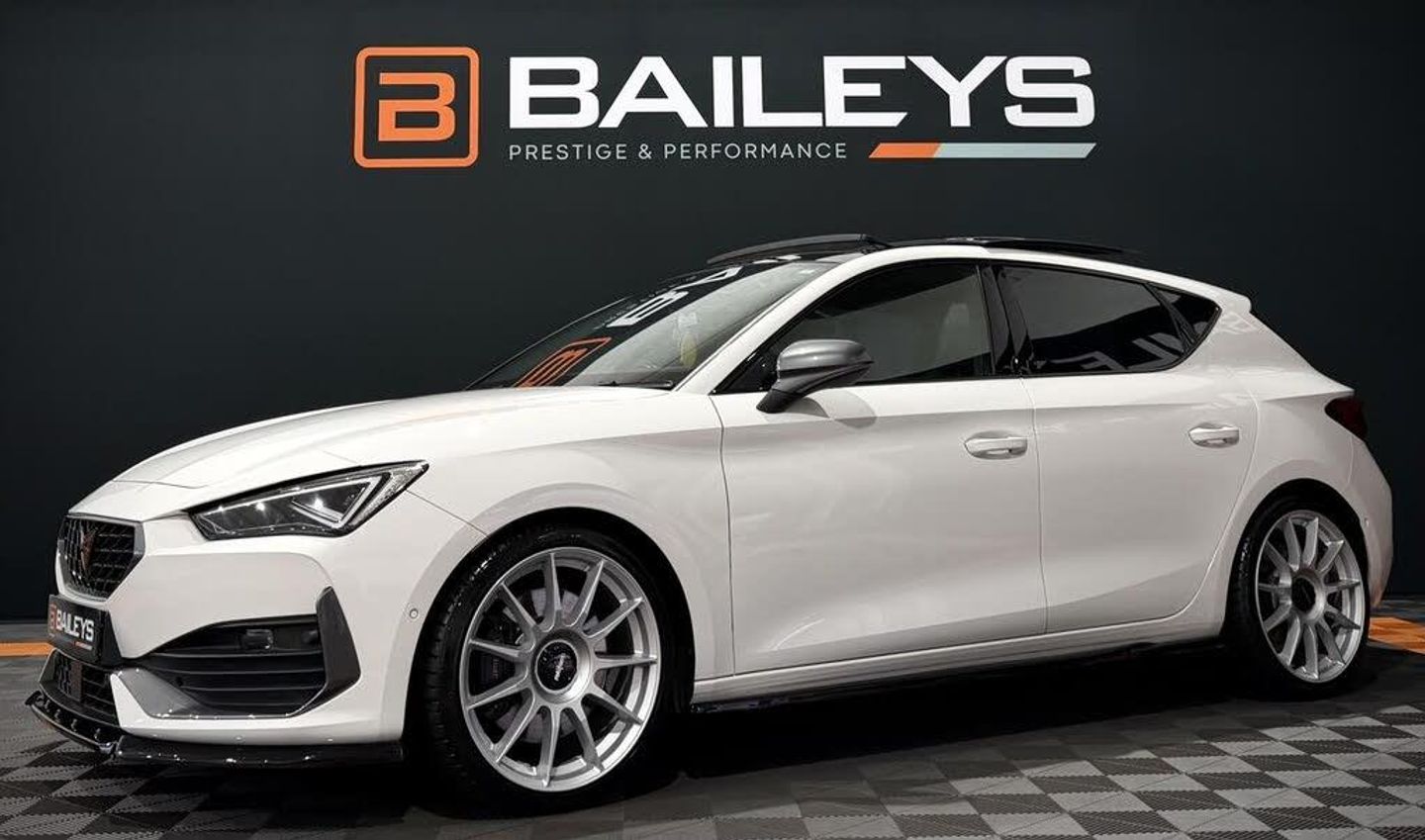 FOR SALE 2023 CUPRA LEON 2.0 TSI VZ3 HATCHBACK 5DR PETROL DSG EURO 6, 31k miles, Running Stage 1 REVO Software Stunning example - Priced to sell £26,995 31,561 miles backed by DVSA MOT Expiry date - 12 months Fully HPI clear and still under main dealer warranty 2023 Cupra Leon 2.0 TSI Hatchback 5dr Petrol DSG Euro 6 finished in white , 31k miles, currently running Revo stage 1 software. Fantastic example and the perfect oppprtunity for anyone wanting a fast cupra. this particular example boasts having a Panoramic Roof, Virtual cockpit, Heated steering wheel, Dynamic Chassis Control, Lane Assist, Auto wipers, Apple CarPlay, Sports display also has the Leather bucket seats which are very saught after. This car is nicely modified having Rotiform alloy wheels giving it that stanced look and has the Maxton splitter kit along with a maxton spoiler extension. Perfect stance but still usable for those of you that have the Bumpy B roads to contend with, all in all a great example ready for the new owner to drive away. Please see full spec listed below FULL SPEC - Revo Stage 1 Software - 19 Rotiform Alloy Wheels - Maxton Designs Full Splitter Kit - Dynamic Chassis Control with drive modes - Panoramic Sunroof - Cupra Leather Bucket Seats - Heated Front Seats - Heated Steering Wheel - Virtual Cockpit - Adaptive Cruise Control - Lane Assist & Advanced Saftey Systems - LED Headlights - Reverse Camera & Parking Sensors - Large Touchscreen Infotainment System - Plus More . Service History - Inspection - 13/03/2023 - 0 Miles - Service - 10/04/2024 - 14,135 Miles - Service + Final Drive Oil - 16/09/2025 - 26,408 Miles Absolutely great example which has been priced fairly at £26,995 Contact us for further information or to book a viewing/test drive. Finance and extended warranties available ** Here at Baileys Prestige & Performance we go the extra mile to make sure you are getting the best service out there, whilst our cars undergo a full health check and are driven and tested, all essential work carried out with no expense spared, P/x Warranty available**