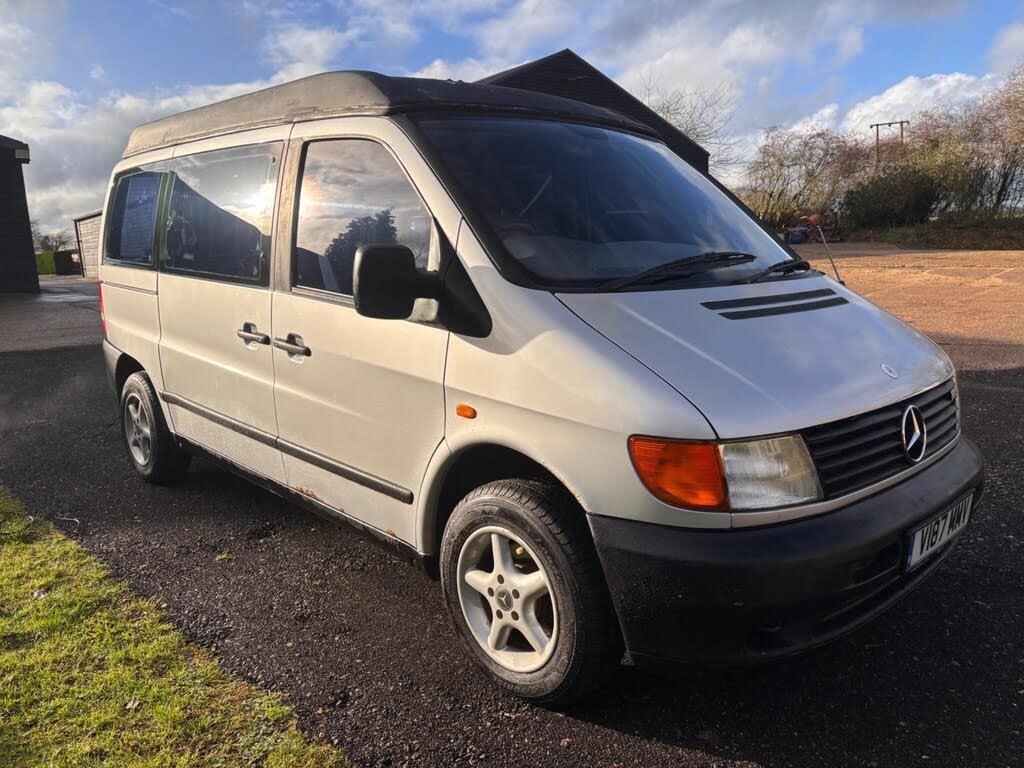 With a new MOT, this exceedingly robust VITO campervan provides a great opportunity for recommission to its former glory.The engine is brilliant and starts first time, every time- runs and drives very well. Operating on both petrol and gas(although not tried gas yet).Purchased fully fitted out as a camper van and lent to someone to use/live in for the last couple of years. When returned the fitted units had been removed. Extendable roof, two sliding doors. Its a project as a campervan, or its a van for someone. Strong positive is the way it drives which is great. The rest, down to the buyers desire. V5c held, 1 key, fully book pack and some paperwork. Located in Herts - delivery anywhere in the UK at mileage cost.