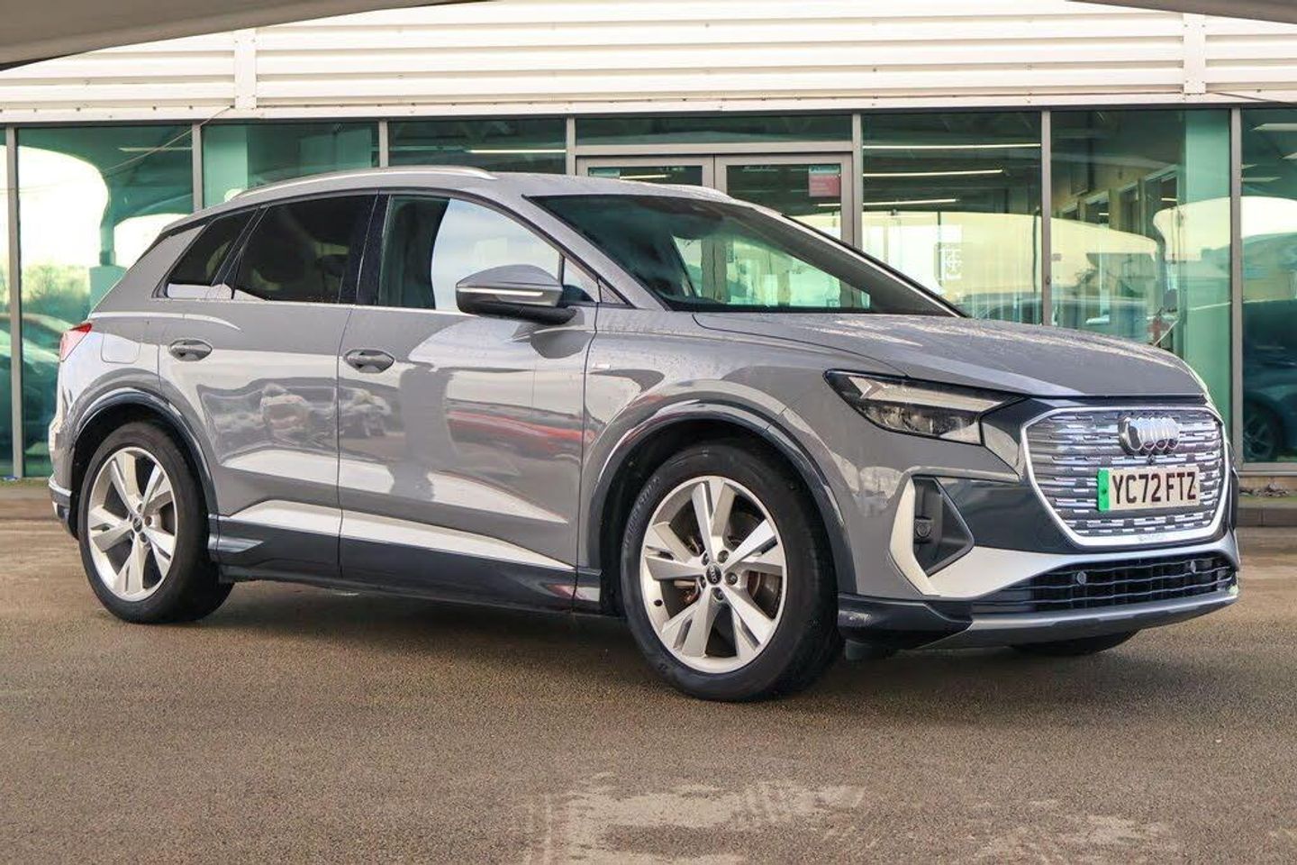 This 2023 Audi Q4 e-tron S line presents a superb opportunity, having been owned by only one careful keeper and boasting exceptionally low mileage for its year. This electric SUV combines sophisticated Audi design with impressive practicality. It features a 55 kWh battery offering a maximum range of 211 miles when new, and benefits from a 7.2 kW onboard charger for convenient home charging in approximately 7 hours and 30 minutes. For faster top ups, it supports 110kW DC charging, capable of reaching 80% charge from empty in as little as 32 minutes. Notable features include LED headlights with distinctive daytime running lights, rear parking sensors for enhanced manoeuvrability, and comfort auxiliary air conditioning to ensure a pleasant cabin environment.The Q4 e-tron S line stands out with its generous boot space, providing ample room for all your needs. Its electric powertrain offers a smooth and quiet driving experience, making it an excellent choice for both city commutes and longer journeys. The low mileage of 22,334 miles indicates that this vehicle has been lightly used, suggesting it is in excellent condition and ready for many more miles of enjoyable driving. This particular example, with its single owner and comprehensive features, offers a compelling proposition for anyone seeking a premium electric vehicle.-Sat Nav-**NOW OPEN**CALL US NOW